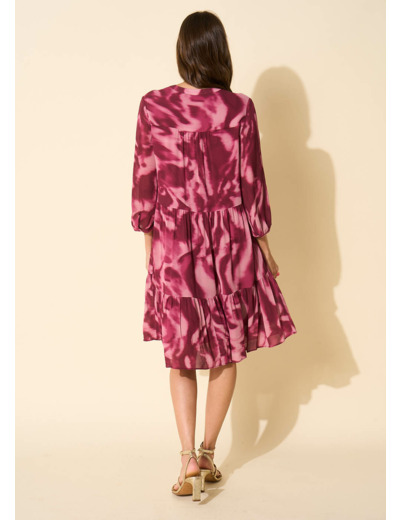 La robe courte RAMIRA présente un imprimé féminin sur toute la robe, créant un look vibrant et estival. Sa silhouette droite offre une allure moderne et élégante, tandis que les détails de volants et de manches bouffantes 3/4 ajoutent une touche de féminité et de dynamisme. Avec son col tunisien et son léger décolleté en V, elle marie habilement un style confortable et féminin.