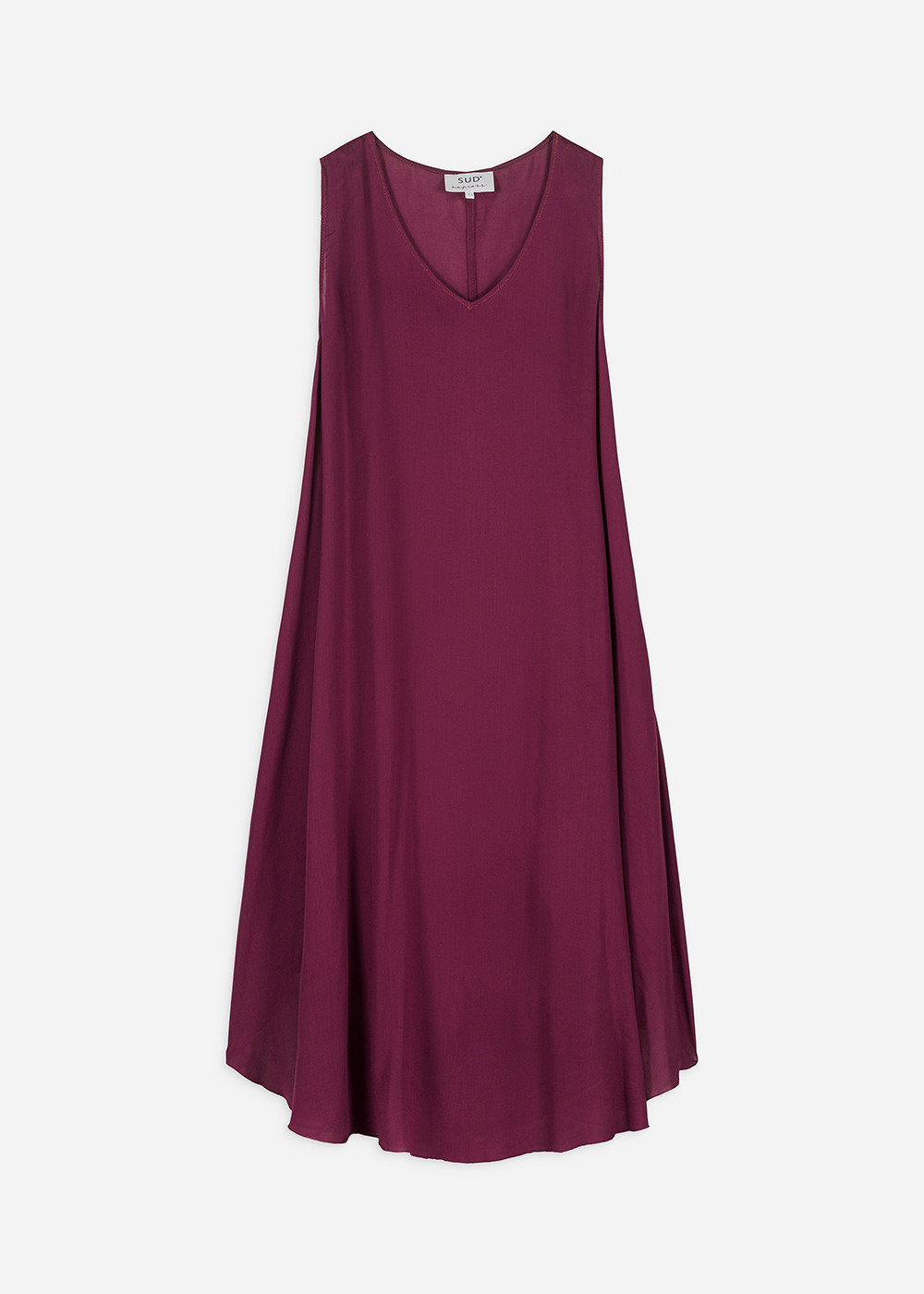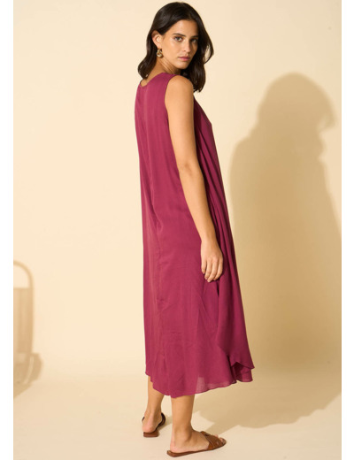 La robe RIMITI se caractérise par sa coupe midi, légèrement plus courte sur les côtés. Elle arbore un col en V et est dépourvue de manches, avec un fond de robe à bretelles intégré. Complétez votre tenue en l'associant à une paire de sandales dorées.