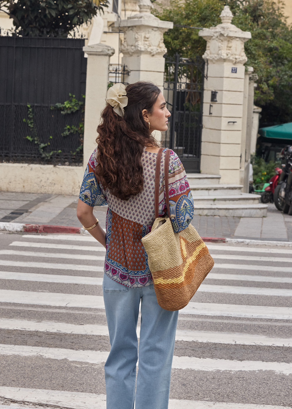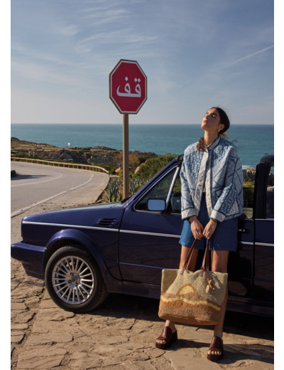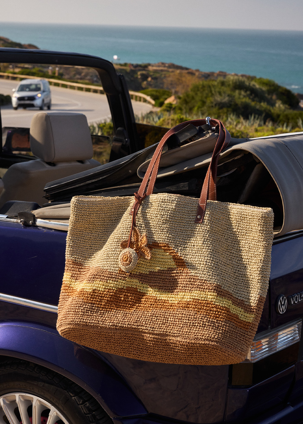 Adoptez l'esprit bohème et estival avec notre sac cabas SUNLIGHT, confectionné en raphia et orné d’un motif coucher de soleil aux tons chaleureux. Son design solaire apporte une touche de douceur et d’élégance à vos tenues estivales.
