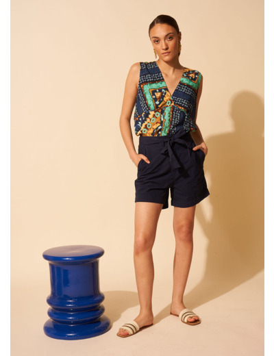 Le short taille haute STARNIA agrémentera toute garde-robe d'été. Il présente des poches italiennes sur le devant et une ceinture amovible. Portez-le aussi bien avec une blouse qu'un tee-shirt.