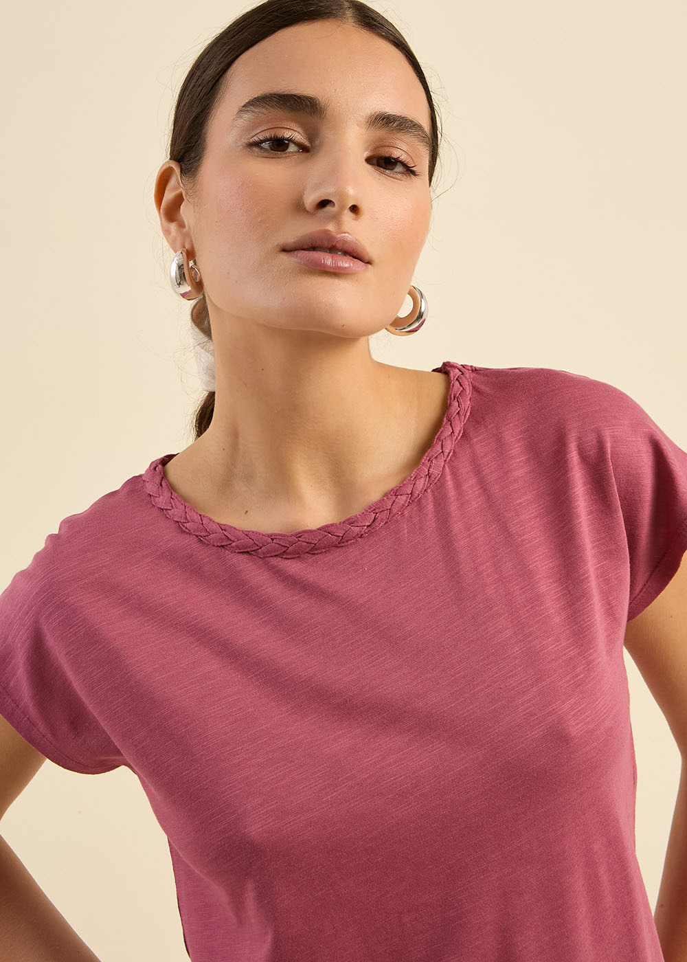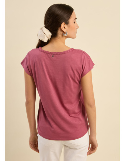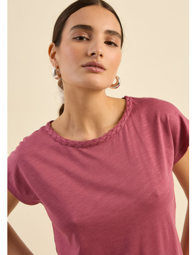 Le t-shirt THIAMY allie simplicité et raffinement avec son col bateau orné d’une tresse brodée, apportant une touche subtile et élégante. Confectionné en coton modal slub, il offre une texture légèrement flammée et une douceur incomparable tout au long de la journée. Ses manches tombantes et sa coupe fluide en font une pièce confortable et facile à porter. Son style décontracté-chic s’associe parfaitement avec un jean ou une jupe pour un look intemporel.