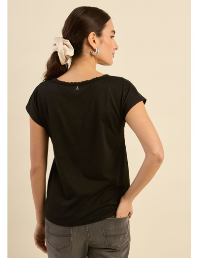 Le t-shirt THIAMY allie simplicité et raffinement avec son col bateau orné d’une tresse brodée, apportant une touche subtile et élégante. Confectionné en coton modal slub, il offre une texture légèrement flammée et une douceur incomparable tout au long de la journée. Ses manches tombantes et sa coupe fluide en font une pièce confortable et facile à porter. Son style décontracté-chic s’associe parfaitement avec un jean ou une jupe pour un look intemporel.