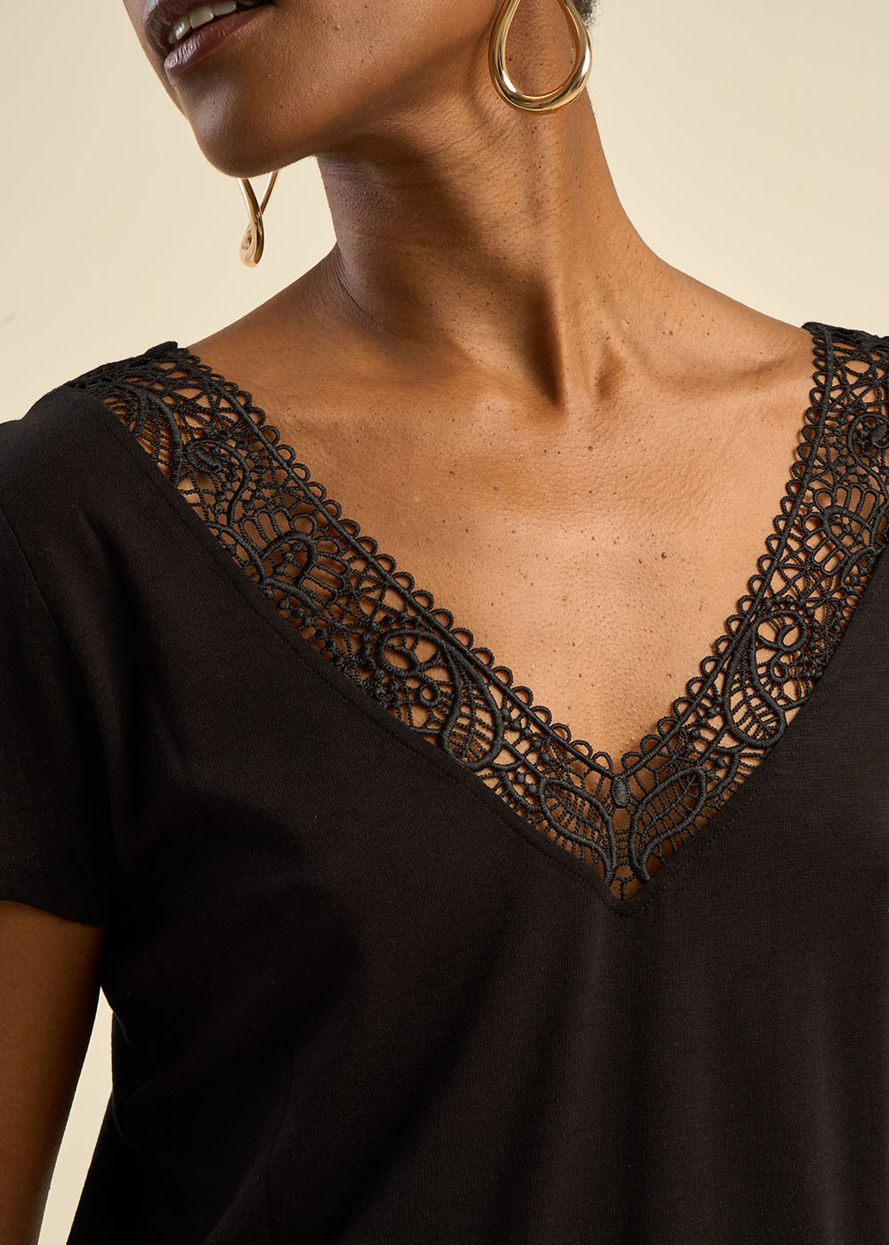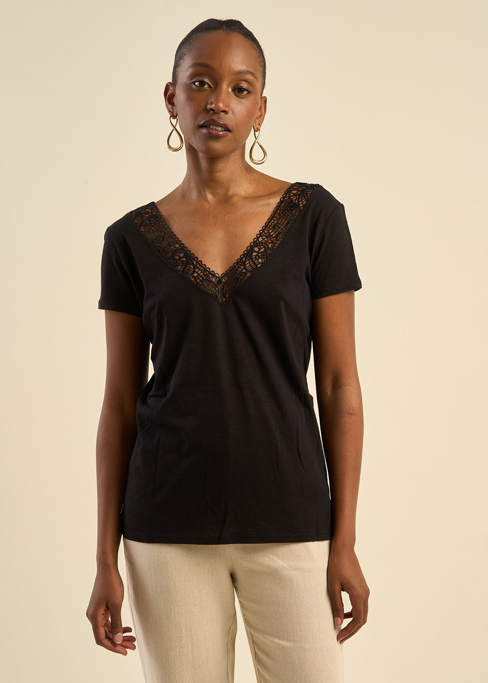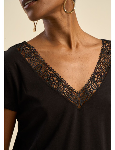 T-shirt, décolleté dos avec broderie