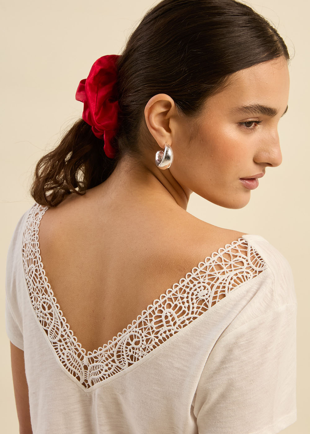 Le t-shirt TISTOU combine simplicité et élégance avec son col V et son décolleté dans le dos subtilement mis en valeur par une broderie rapportée. Confectionné dans une matière douce et légère, il assure un confort optimal tout au long de la journée. Ses manches courtes et sa coupe fluide en font une pièce facile à porter, idéale pour une allure à la fois décontractée et sophistiquée. Le détail de la broderie dans le dos apporte une touche délicate et raffinée. Il s’associe parfaitement avec un jean ou une jupe pour un look harmonieux et féminin.