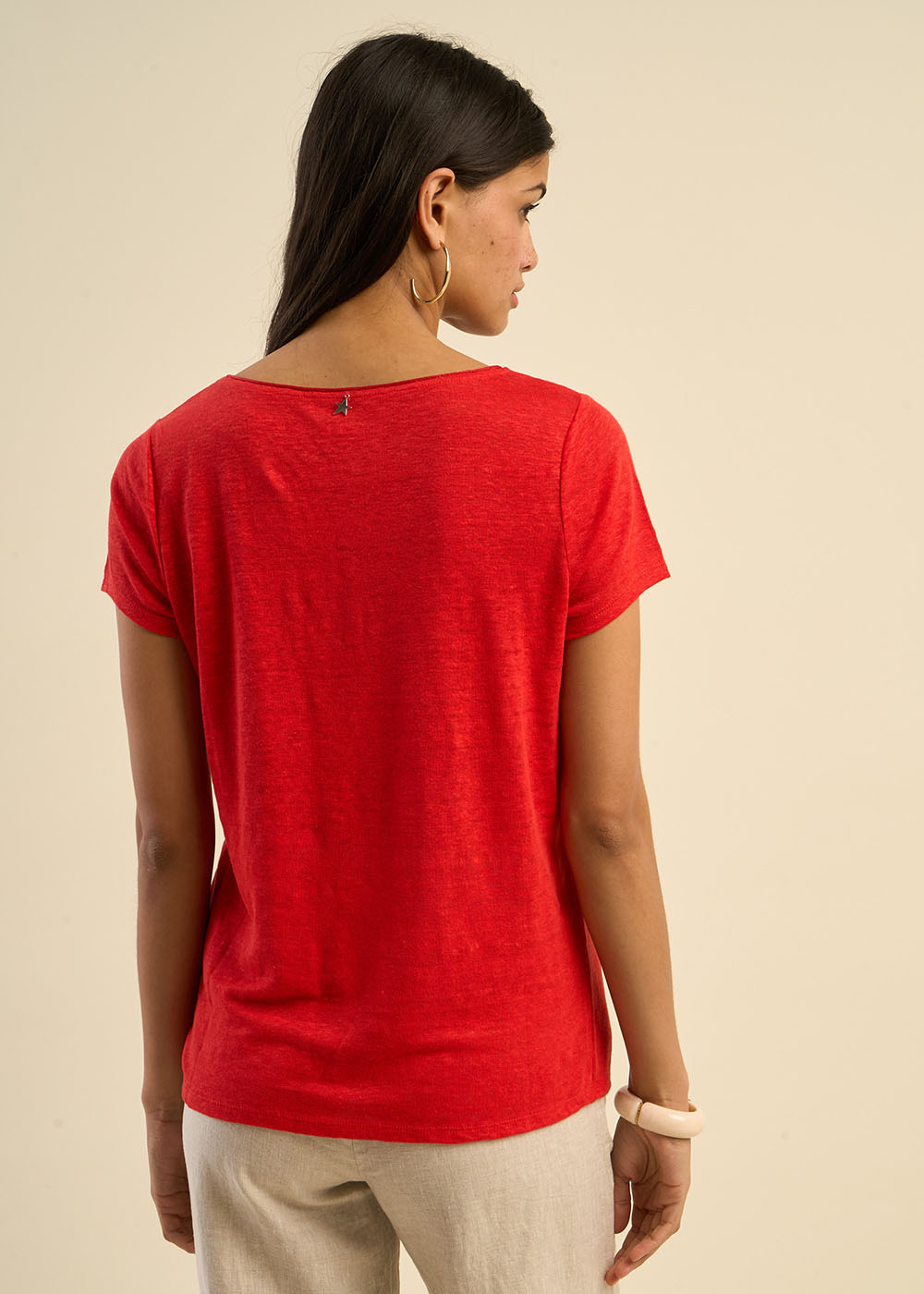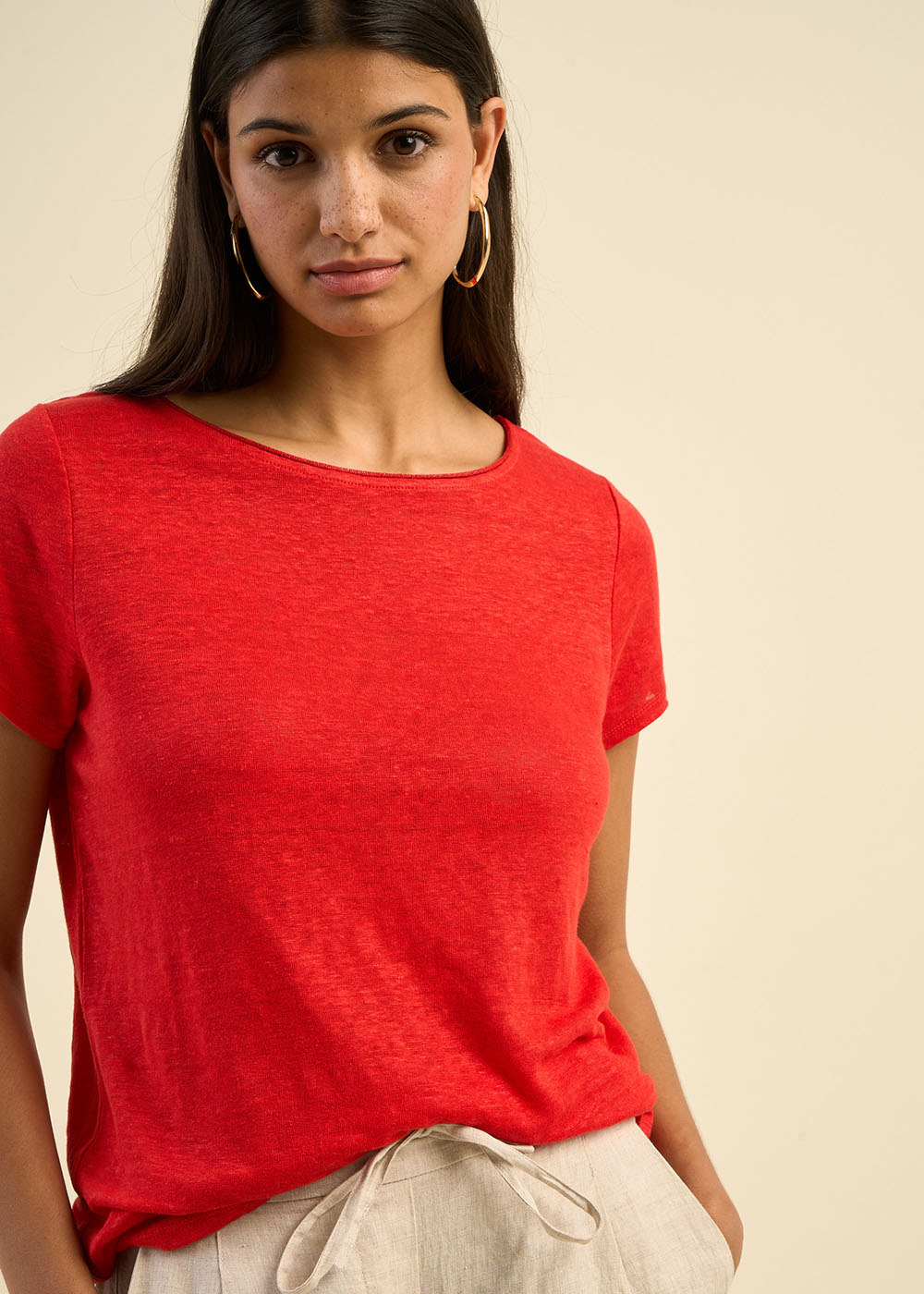 Le t-shirt TRECY est une pièce à la fois intemporelle et élégante, parfaite pour sublimer vos looks du quotidien. Confectionné en lin léger, il assure une sensation de fraîcheur et un tombé naturel. Son col bateau délicat est rehaussé d’un fin roulotté en lurex, ajoutant une touche lumineuse subtile. Ses manches courtes et sa coupe fluide offrent un confort absolu tout en apportant une allure moderne et raffinée. Facile à associer, il se porte aussi bien avec un jean qu’avec une jupe fluide pour une silhouette chic et décontractée.