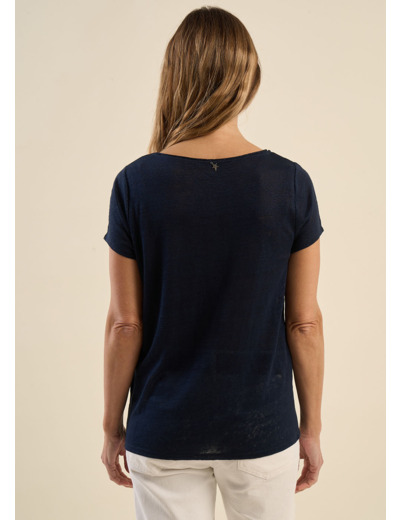 Le t-shirt TRECY est une pièce à la fois intemporelle et élégante, parfaite pour sublimer vos looks du quotidien. Confectionné en lin léger, il assure une sensation de fraîcheur et un tombé naturel. Son col bateau délicat est rehaussé d’un fin roulotté en lurex, ajoutant une touche lumineuse subtile. Ses manches courtes et sa coupe fluide offrent un confort absolu tout en apportant une allure moderne et raffinée. Facile à associer, il se porte aussi bien avec un jean qu’avec une jupe fluide pour une silhouette chic et décontractée.