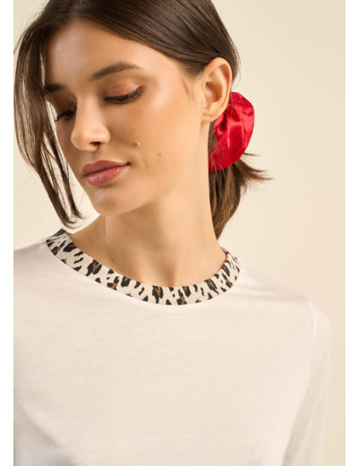 Tee-shirt avec col imprimé léopard