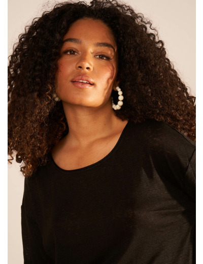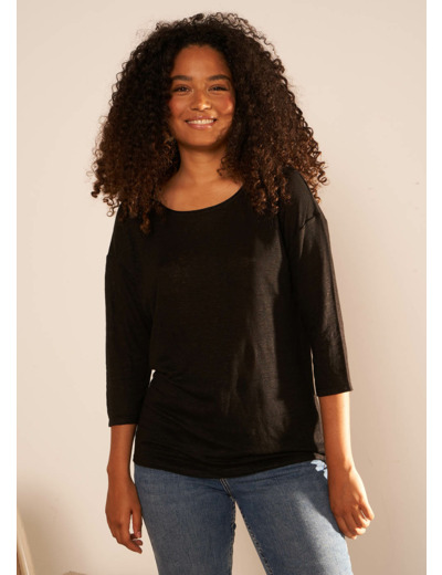 Le tee-shirt TONIA est un basique qui se démarque par son col rond flatteur ses manches 3/4 et ses détails lurex qui ajoutent une touche subtile d'éclat à la pièce.