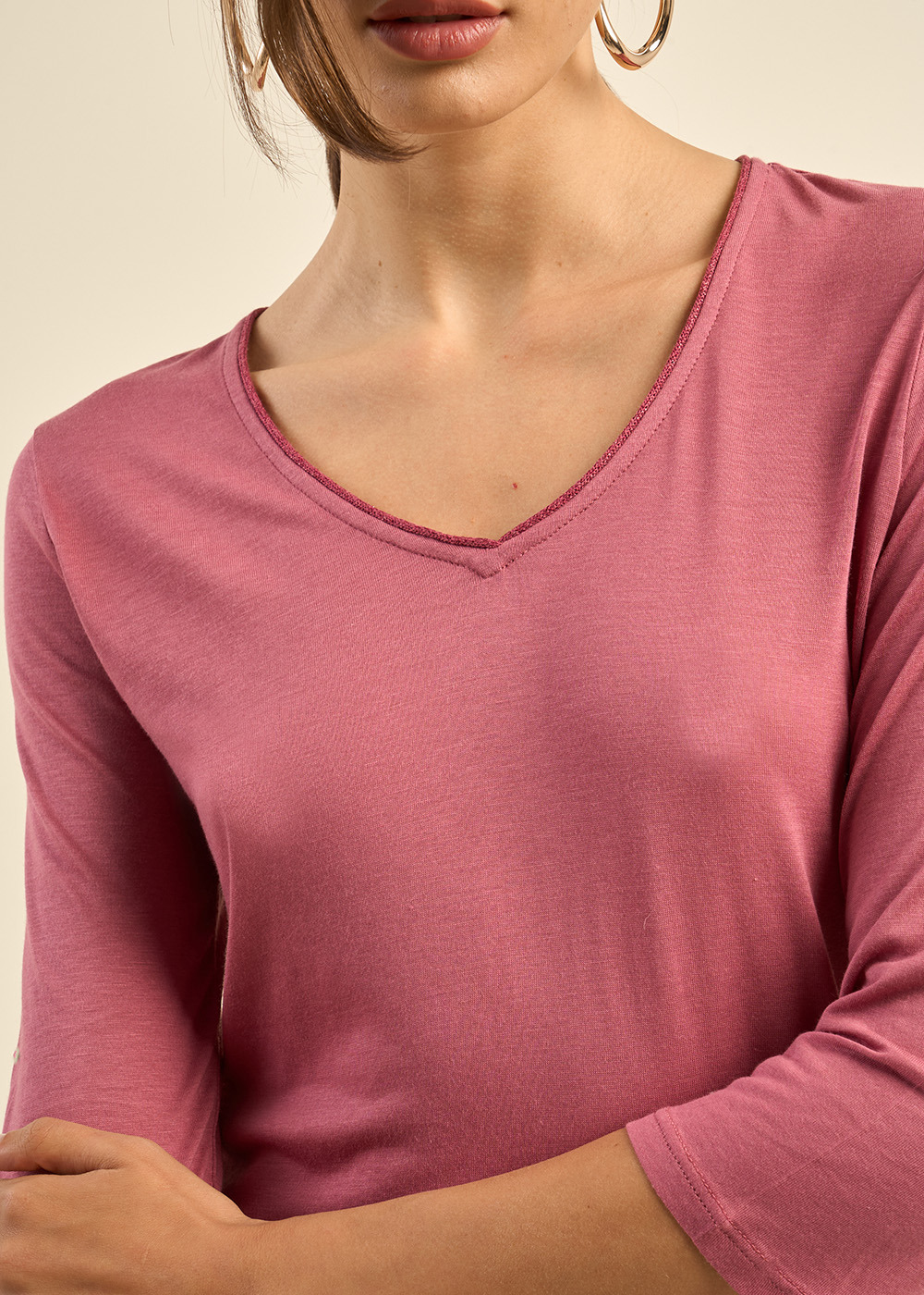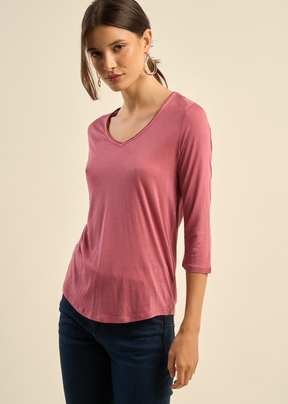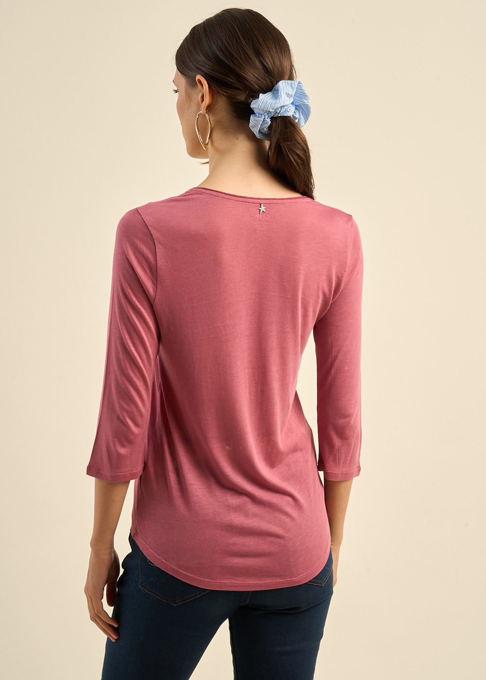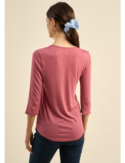 Le tee-shirt TASSIANE, l'allié parfait pour un quotidien chic. Sa matière, un mélange de viscose et de coton, est à la fois douce et légère. Le col en V et les manches 3/4 lui confèrent une allure intemporelle. Parfait pour toutes les occasions.