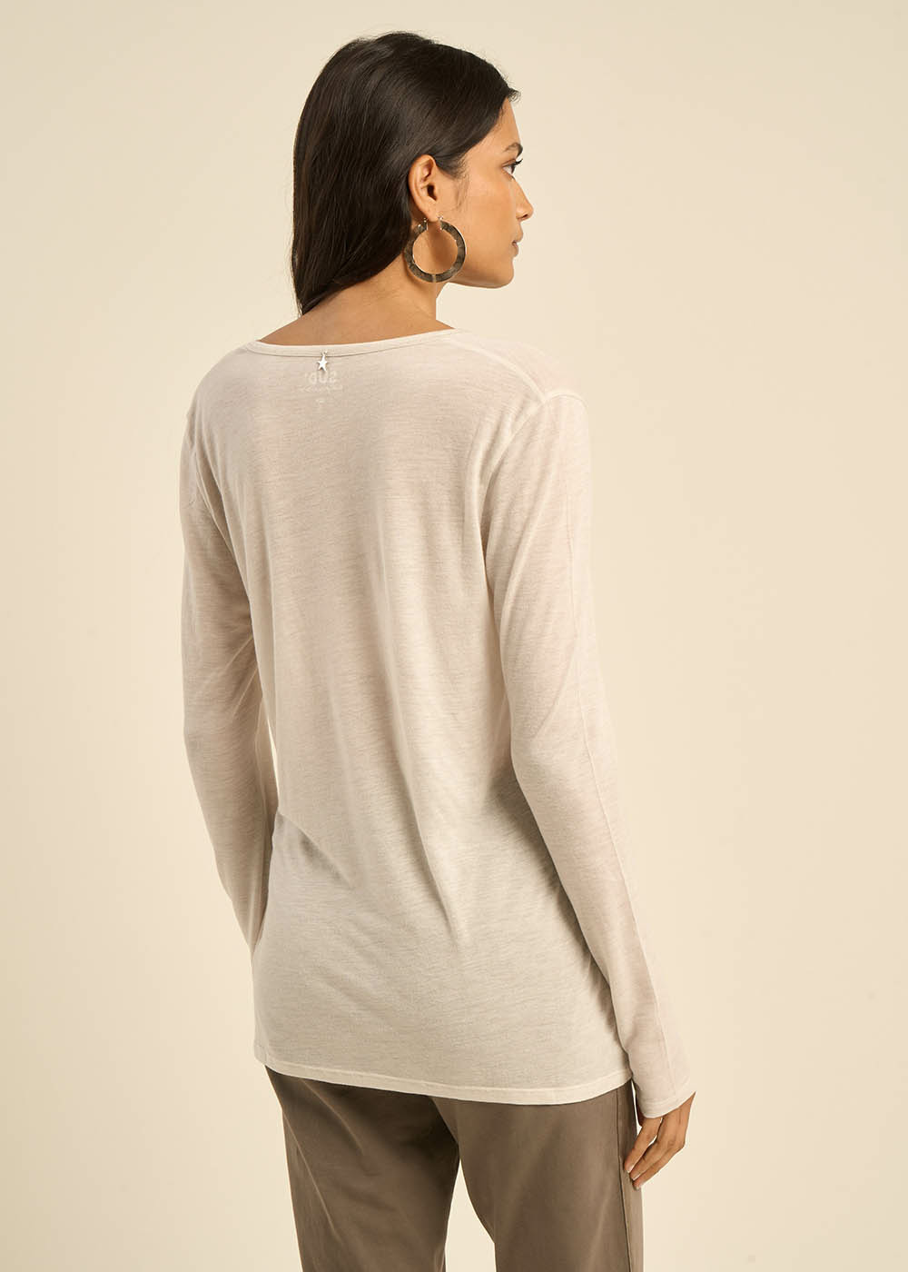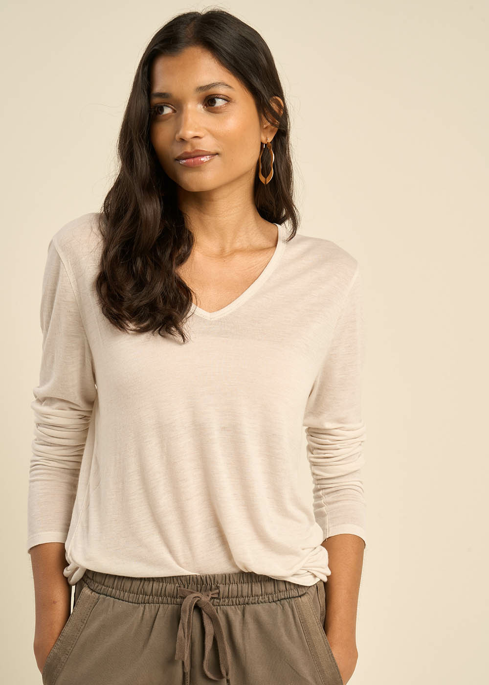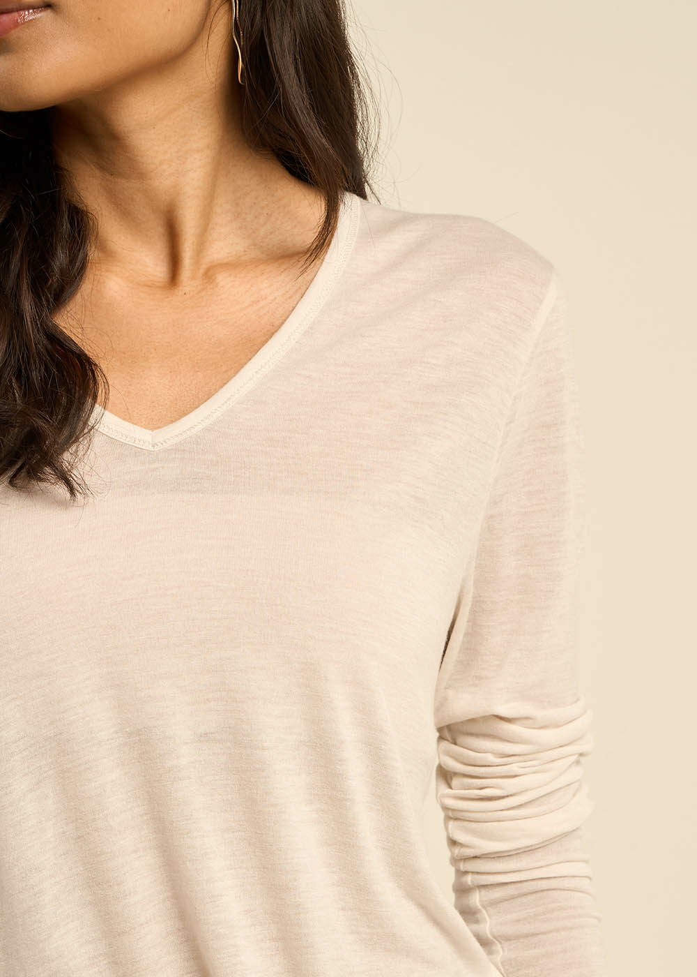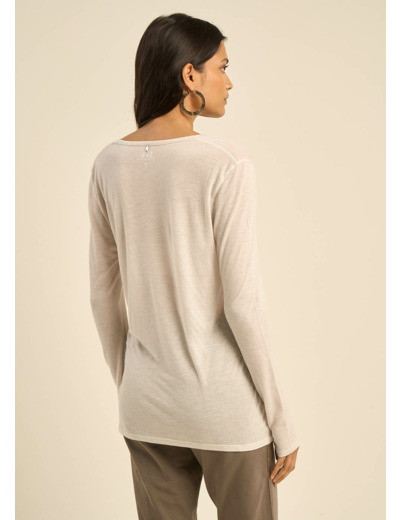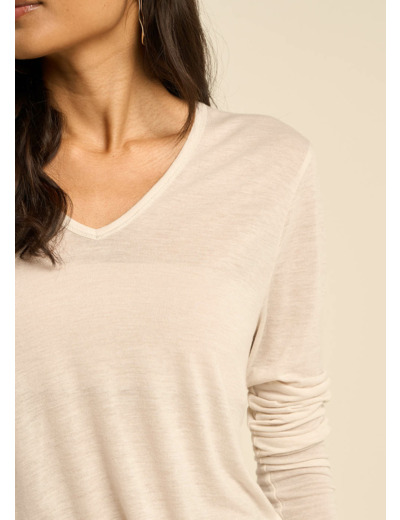 Découvrez notre T-shirt TASSINA en voile de laine, doté d'un col V élégant et de manches 3/4. Cette pièce légère et raffinée allie confort et style, parfaite pour un look chic et décontracté. Adoptez ce T-shirt pour une allure sophistiquée en toute simplicité. Il existe en 5 coloris.