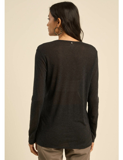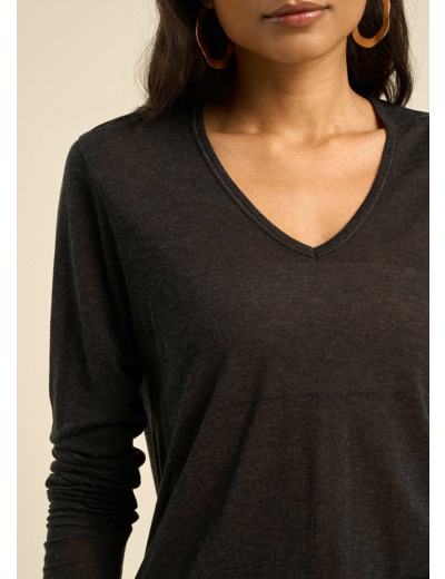 Découvrez notre T-shirt TASSINA en voile de laine, doté d'un col V élégant et de manches 3/4. Cette pièce légère et raffinée allie confort et style, parfaite pour un look chic et décontracté. Adoptez ce T-shirt pour une allure sophistiquée en toute simplicité. Il existe en 5 coloris.