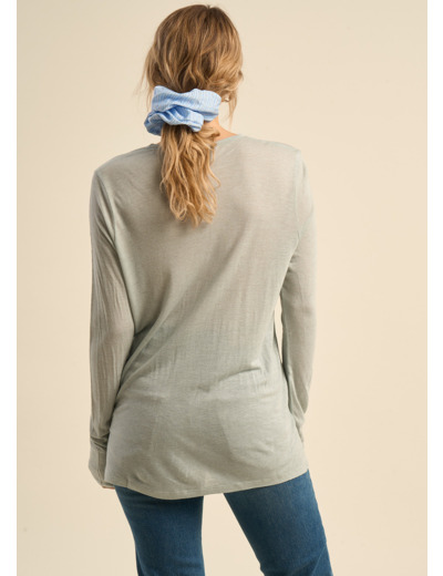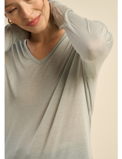 Découvrez notre T-shirt TASSINA en voile de laine, doté d'un col V élégant et de manches 3/4. Cette pièce légère et raffinée allie confort et style, parfaite pour un look chic et décontracté. Adoptez ce T-shirt pour une allure sophistiquée en toute simplicité. Il existe en 5 coloris.