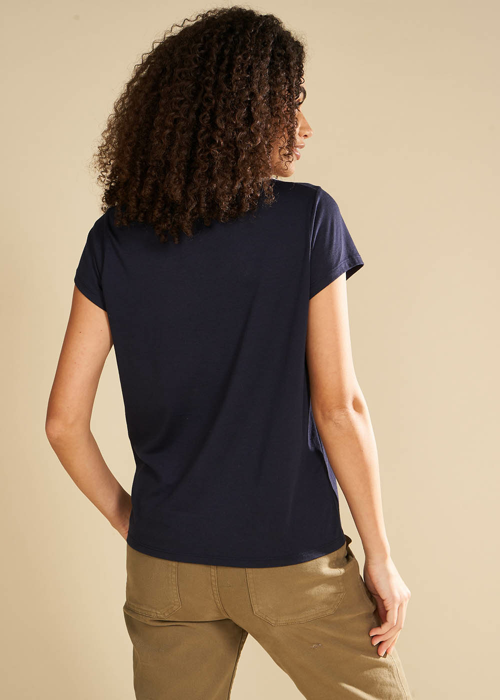 Facile à associer avec un jean ou un pantalon le tee-shirt TOANY est un indispensable dans votre dressing. Focus sur son col en V aux détails métalliques qui lui donne une allure chic et décontractée.