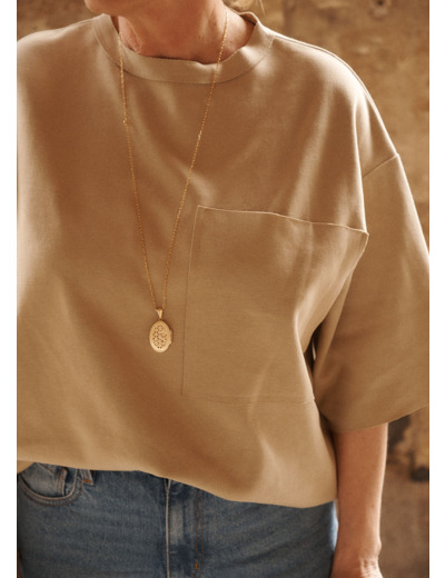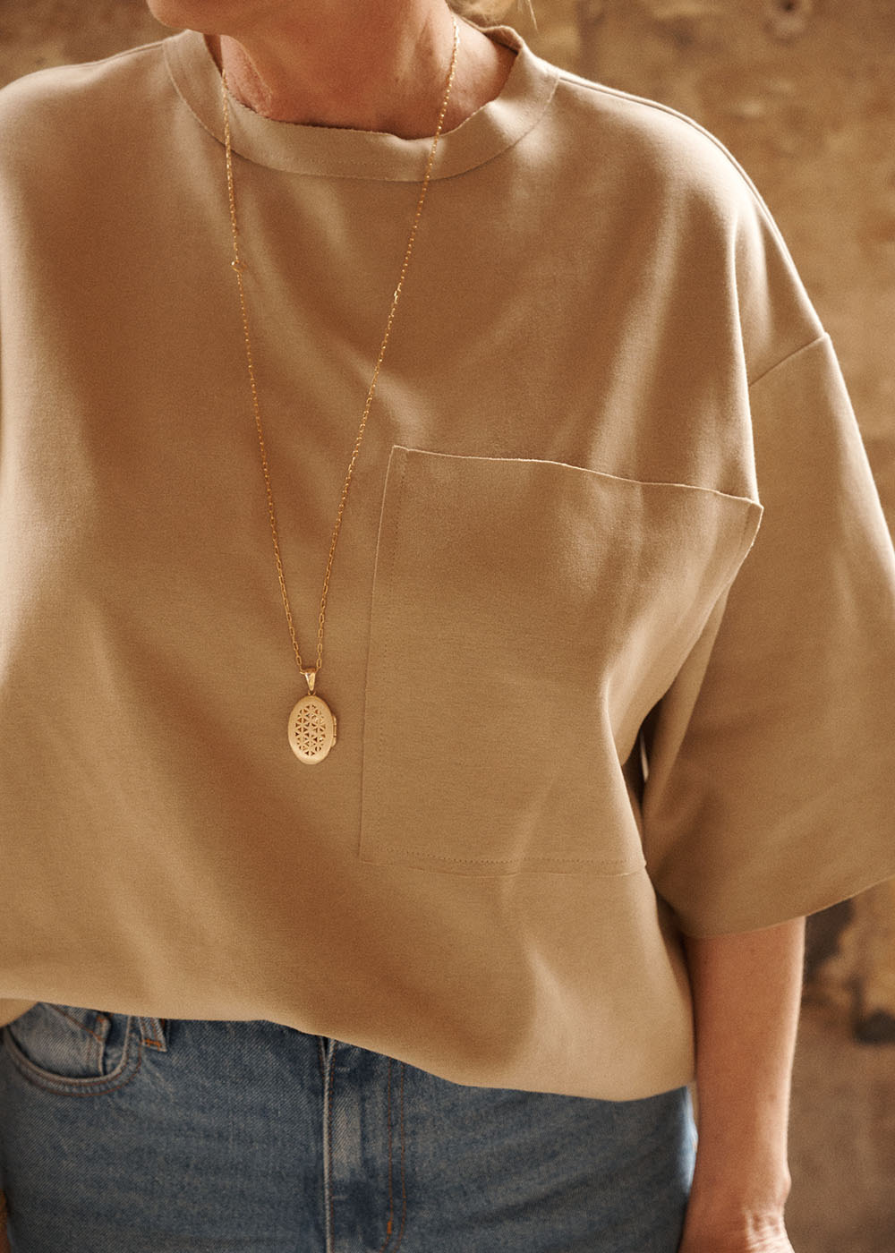 Le tee-shirt TOSCANE résulte d'une collaboration entre l'Armoire de Soso et Sud Express. Il présente une coupe oversize avec un col rond des manches courtes et une poche délicate cousue à l'avant.