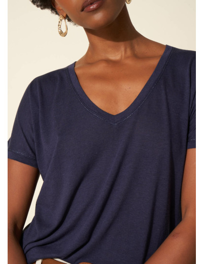 Le tee-shirt TELIZO offre une coupe oversize avec des manches courtes et un col en V alliant confort et style en une seule pièce. Associez-le à un pantalon taille haute et des mocassins pour un look branché au quotidien.