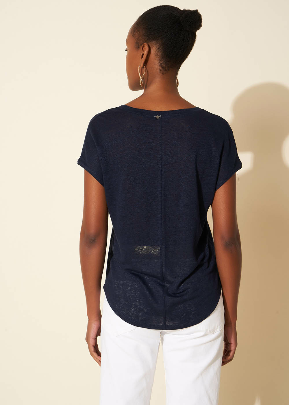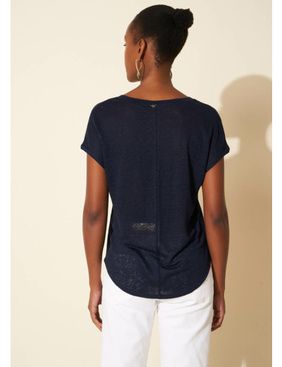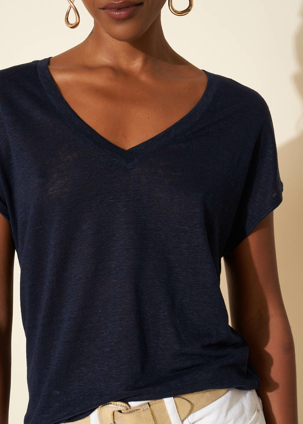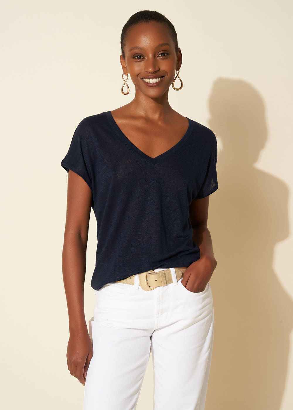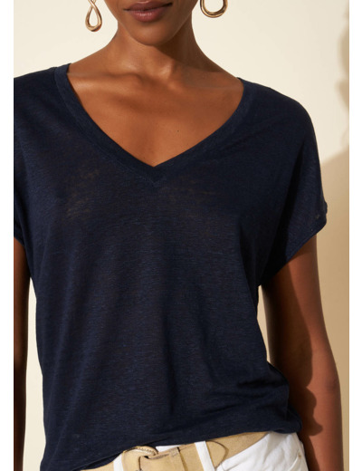 Le tee-shirt TINDYA en 100% lin offre une coupe oversize avec un col en V et des manches courtes sans emmanchures combinant légèreté et style décontracté pour une tenue légre et confortable.Optez pour une allure estivale en associant le tee-shirt TINDYA avec un pantalon fluide et des sandales plates.