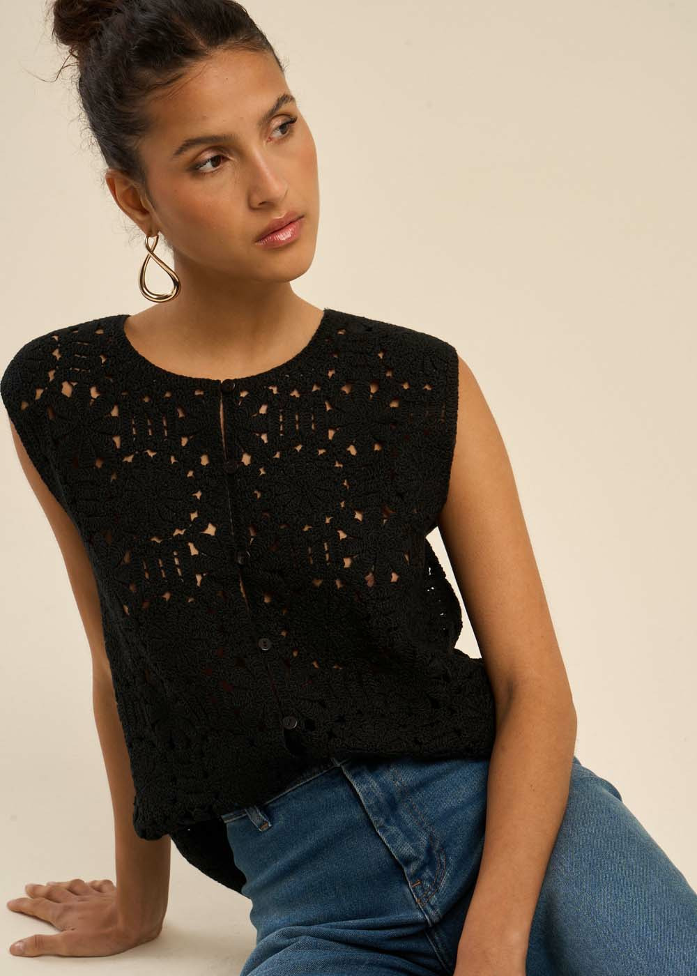 • Gilet en maille ajourée
