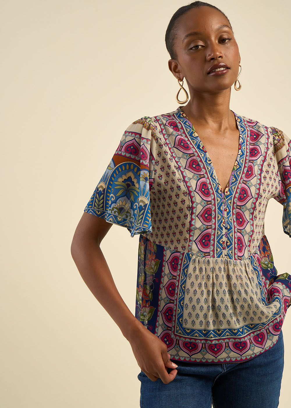 Avec sa coupe flatteuse et son imprimé foulard tendance, le top TALIDA est la pièce idéale pour conjuguer confort et style en été. Parfait en journée comme en soirée, il s’adapte à toutes les occasions avec une allure à la fois décontractée et élégante.