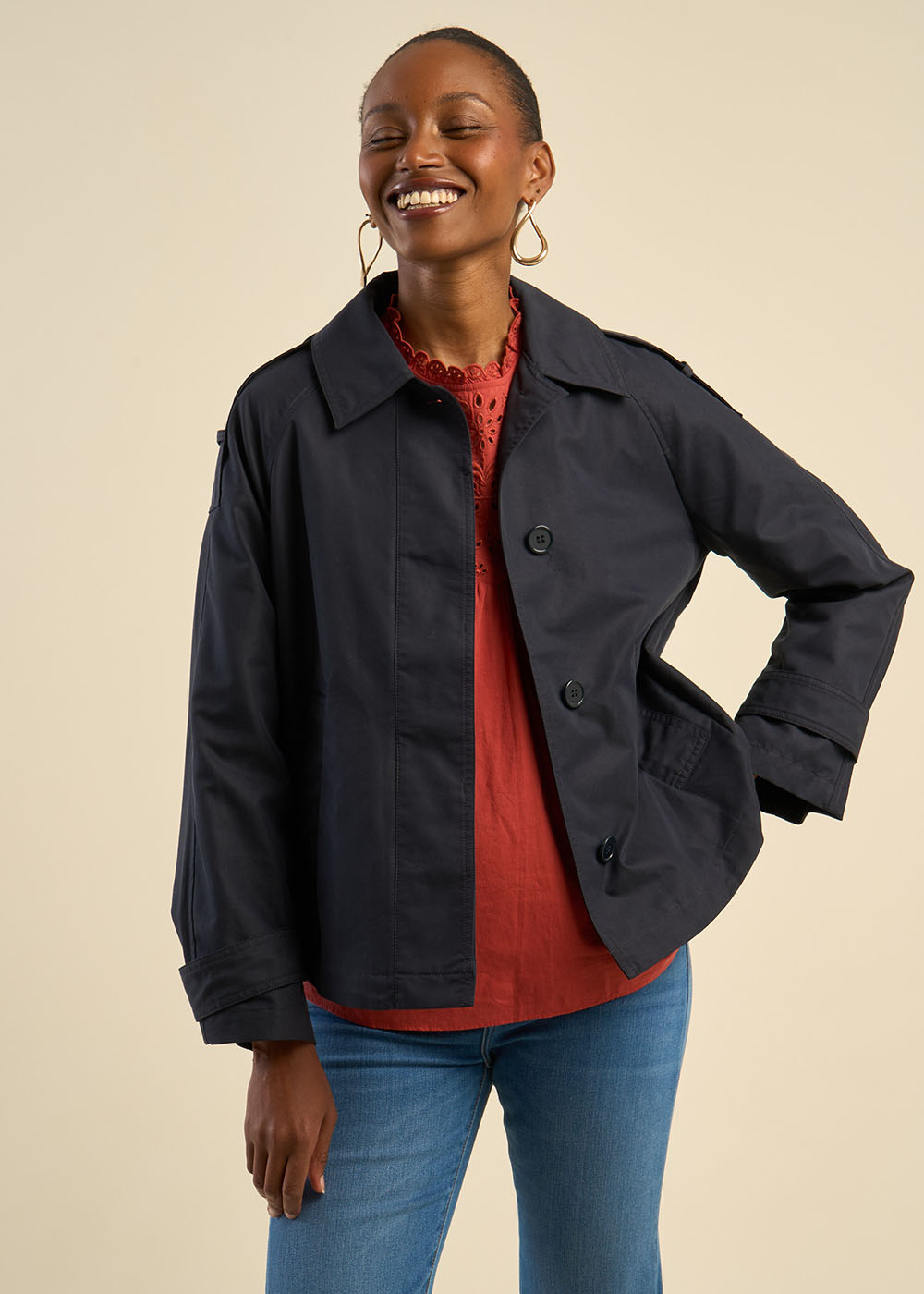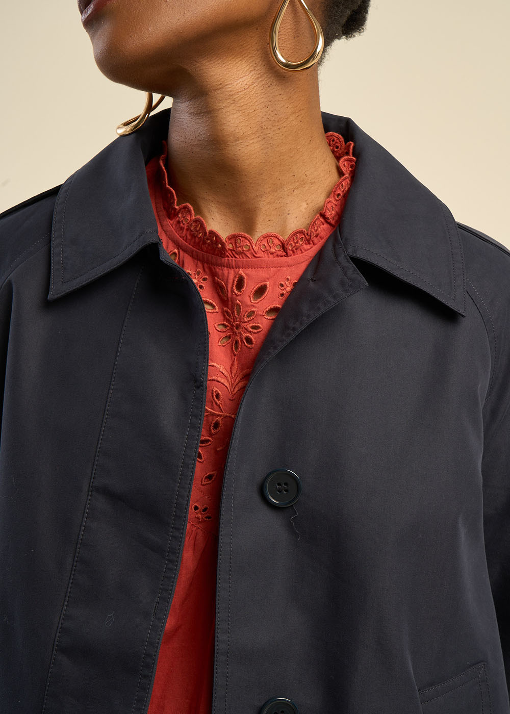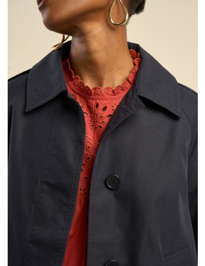 VELIZA est un trench court en coton à la coupe large et évasée, offrant à la fois confort et allure moderne. Sa silhouette structurée et ses détails raffinés en font une pièce élégante, parfaite pour la mi-saison.