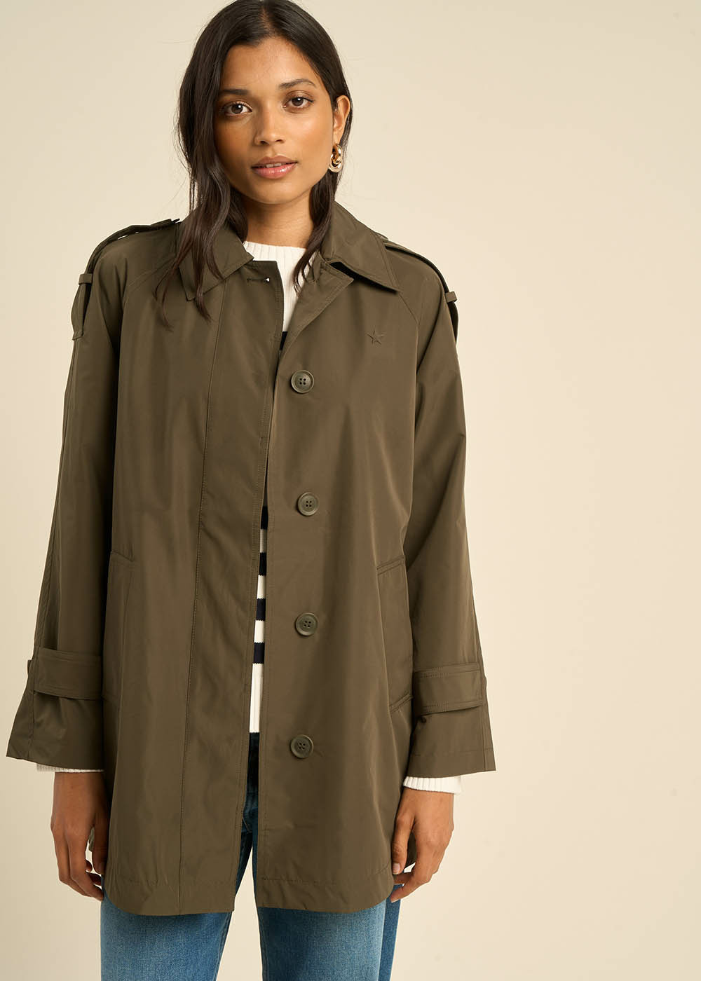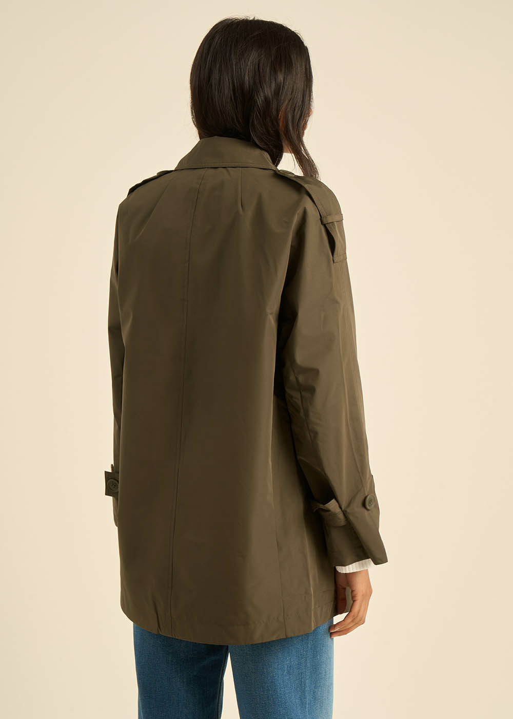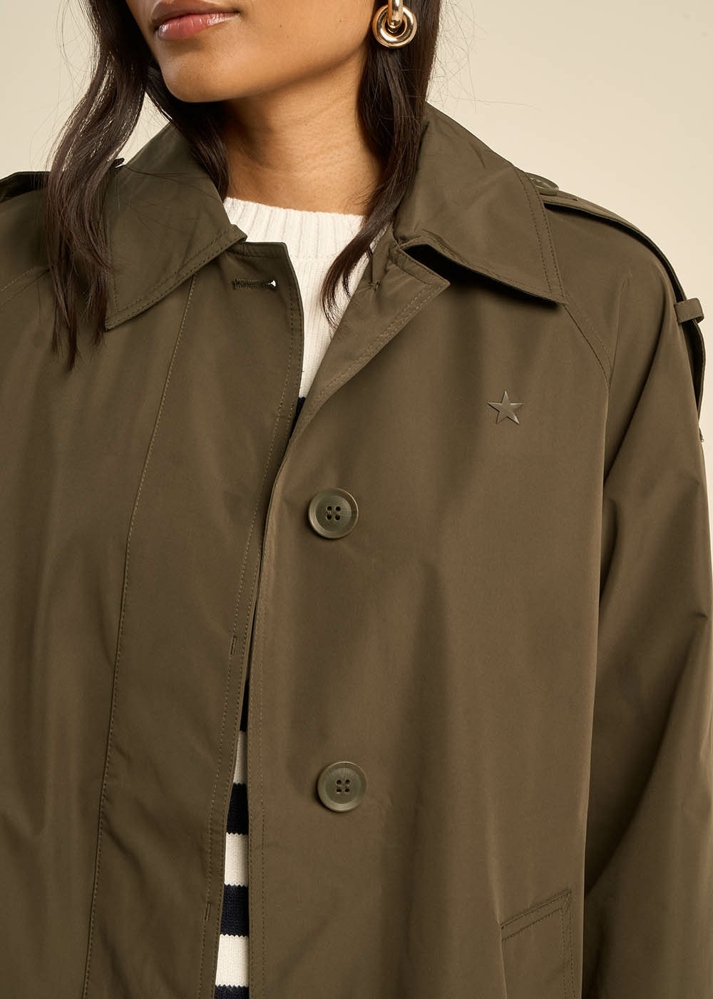 Trench mi-cuisse en matière déperlante