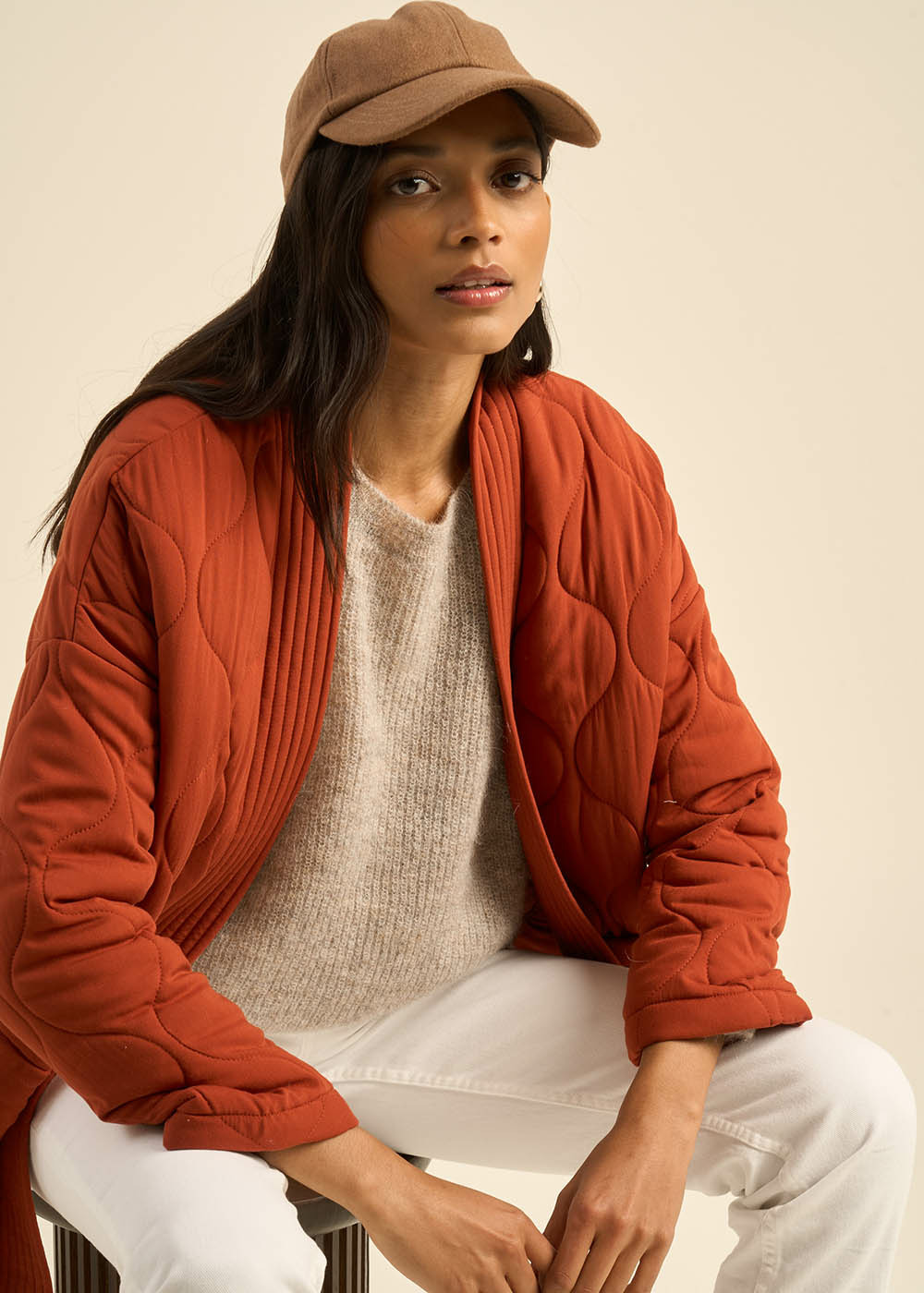 La veste VOLITA se démarque par son élégant matelassage. Avec son col châle et ses manches longues elle offre une allure chic et décontractée. Deux poches cousues à l'avant ajoutent une touche pratique. Sa coupe décontractée en fait le choix parfait à enfiler par-dessus un tee-shirt pour un look tendance. Existe en deux nouveaux coloris.
