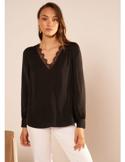 Vous allez craquer pour l'élégante blouse BRICE au col en V rehaussée d'élégants inserts de dentelle fusionnant féminité et raffinement. Son empiècement délicatement froncé aux épaules et dans le dos ajoute une touche de sophistication. Les manches longues ornées de poignets classiques à trois boutons complètent ce vêtement intemporel avec une note de charme. Portez-la avec votre jean préféré !
