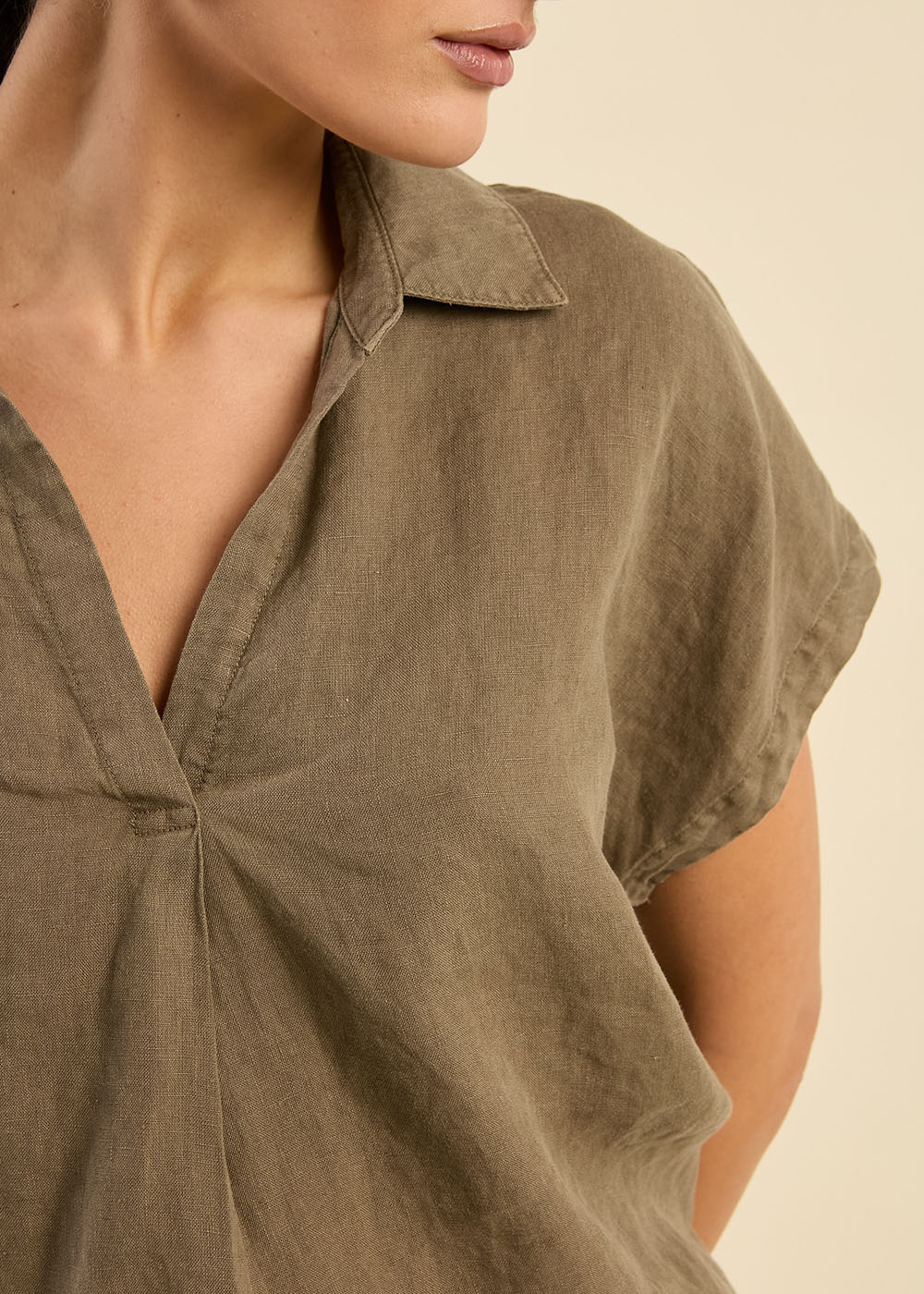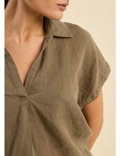 La blouse TAMINA associe confort et élégance avec son col chemisier épuré, ajoutant une touche de sophistication à votre tenue. Confectionnée en 100% lin, elle offre une sensation de légèreté et de fraîcheur idéale pour la journée. Ses manches courtes et son emmanchure tombante renforcent son allure fluide et décontractée. Avec sa coupe ample et son tissu uni, elle est parfaite pour un look à la fois naturel et raffiné.