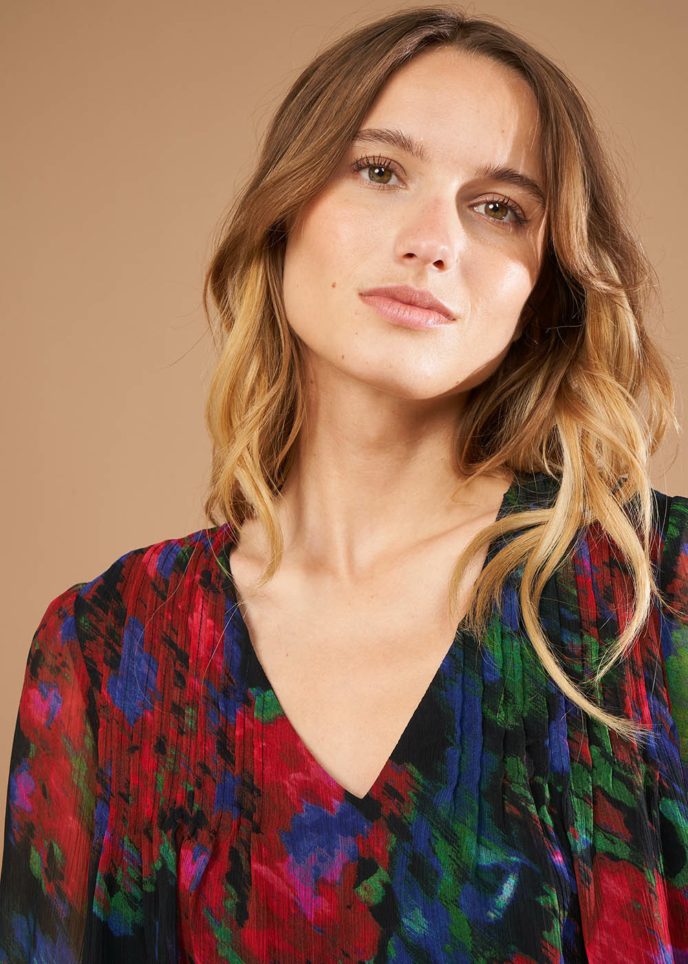 Craquez pour notre top imprimé à l'encolure en V. Le TAZZURA vous apportera une touche élégante et décontractée. Les plis plats sur le devant ajoutent une dimension supplémentaire à ce vêtement chic. Ses manches 3/4 avec un petit poignet boutonné ajoutent une finition raffinée à ce haut polyvalent. Associez-le avec votre jeans préféré pour un succès garanti!