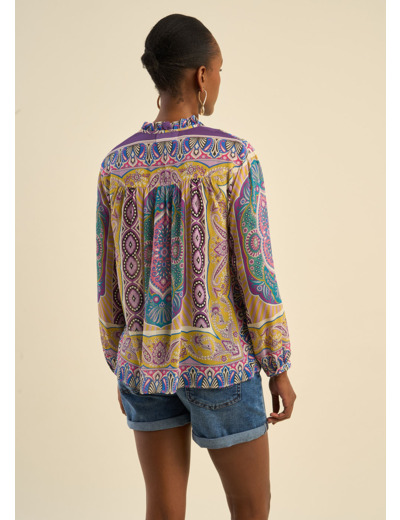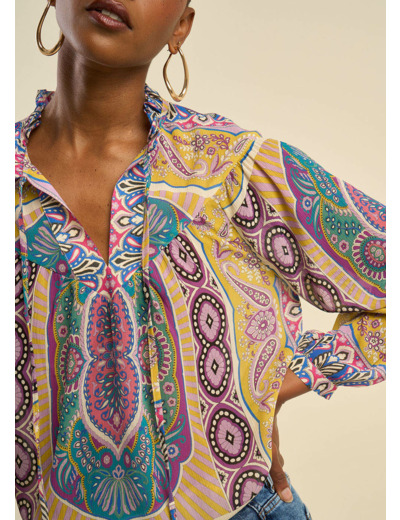 Adoptez un look bohème et raffiné avec la blouse TAMATHA. Son imprimé foulard dans des tons mauve et ocre apporte une touche d'élégance, tandis que sa coupe fluide assure un confort optimal.