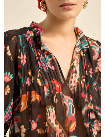 Blouse imprimée avec détails plissés