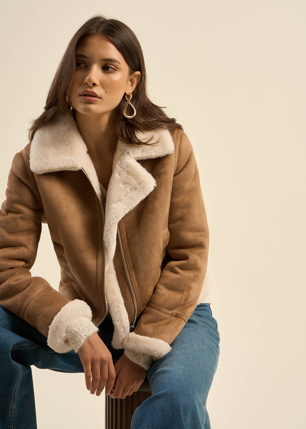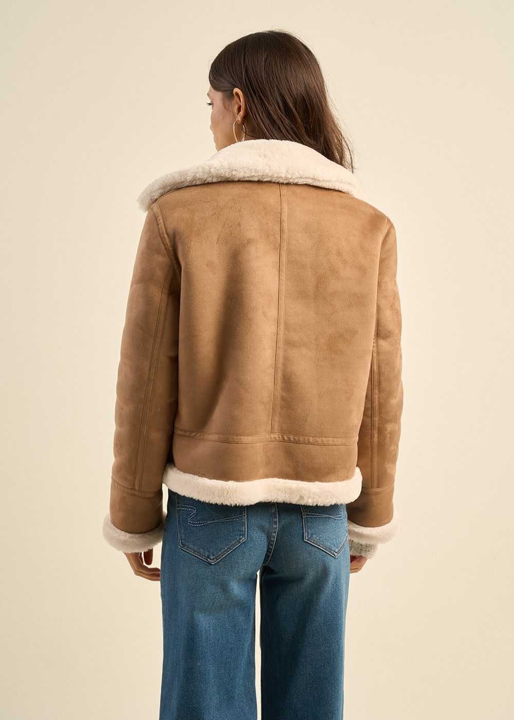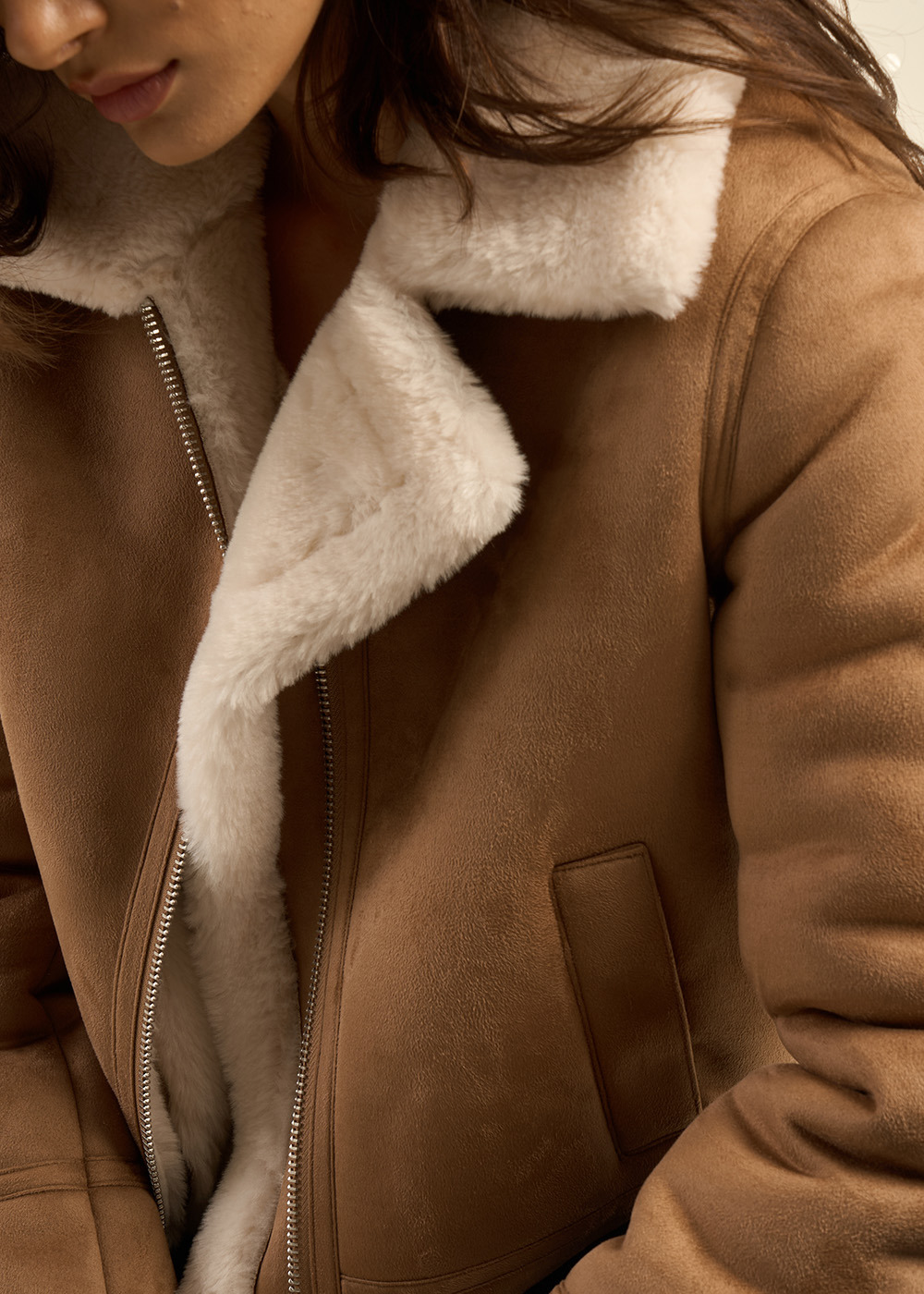 Laissez-vous séduire par le blouson MALVINO. L'extérieur de cette veste en fausse peau lainée présente un faux cuir daim, ajoutant une élégance et une texture douce à votre look. À l'intérieur, la fausse fourrure offre chaleur et confort. Le zip central à l'avant permet une fermeture pratique et ajustable. Que ce soit pour une journée décontractée ou pour ajouter une couche de chaleur et de style à une tenue plus habillée, cette veste combine texture et confort avec brio.