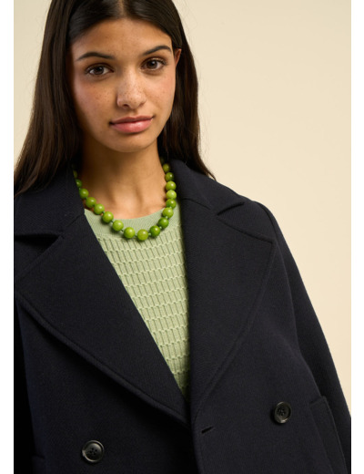 Le manteau MAXY est l'essence même du chic et du raffinement. Ce caban court en drap de laine séduit par son design élégant et ses détails sophistiqués. Avec son col tailleur classique et son double boutonnage croisé, il incarne une allure intemporelle. Les deux poches raglan discrètes ajoutent une touche pratique tout en préservant la fluidité du design. Idéal pour rehausser vos tenues d'hiver, le manteau MAXY allie style et confort pour un look impeccable.