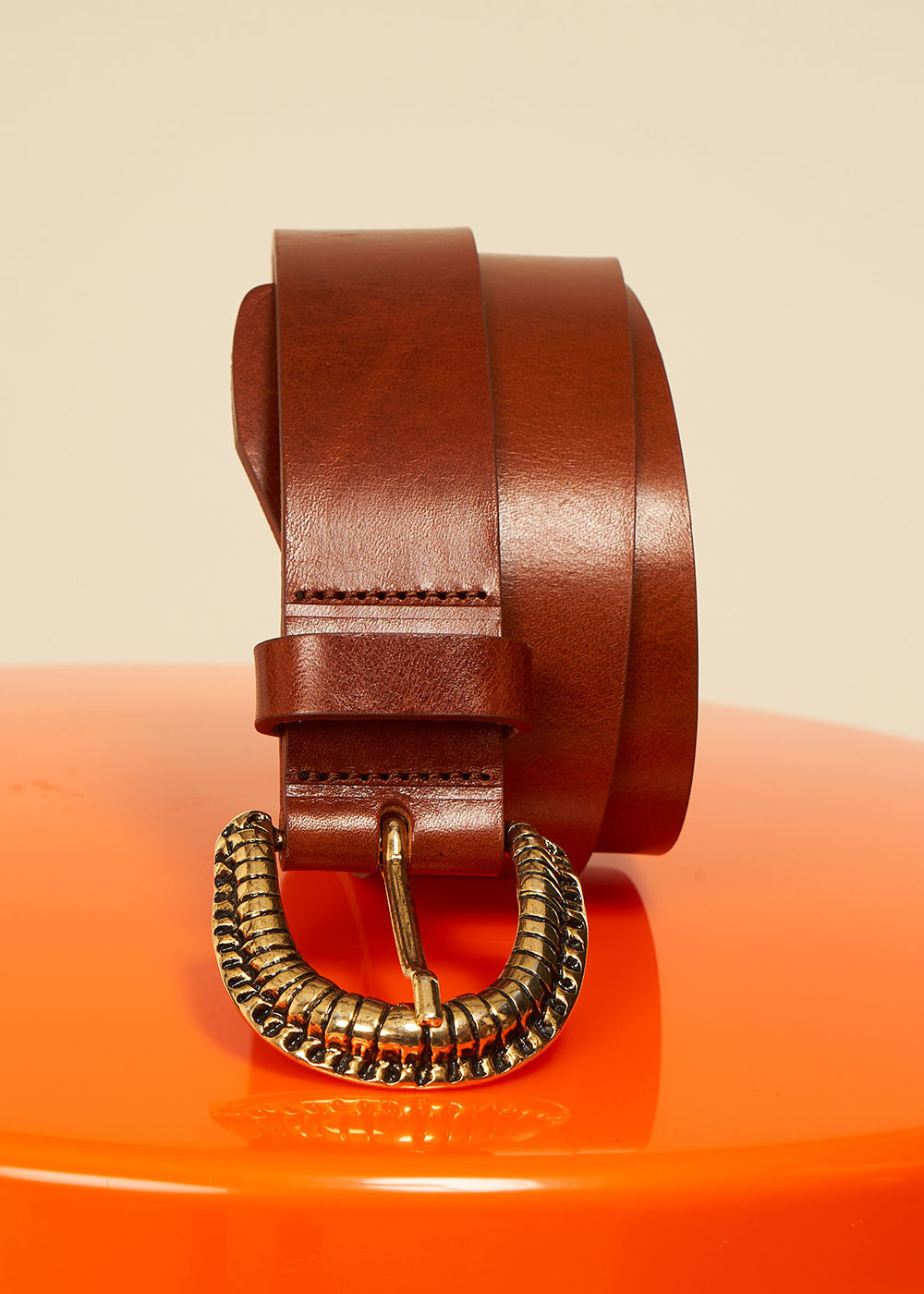La ceinture CEDRA en cuir présente une combinaison harmonieuse de sophistication et d'authenticité. La boucle fantaisie en laiton vieilli ajoute une touche de charme vintage apportant une esthétique unique à l'ensemble. Cette ceinture se révèle être un accessoire polyvalent qui allie raffinement et originalité.