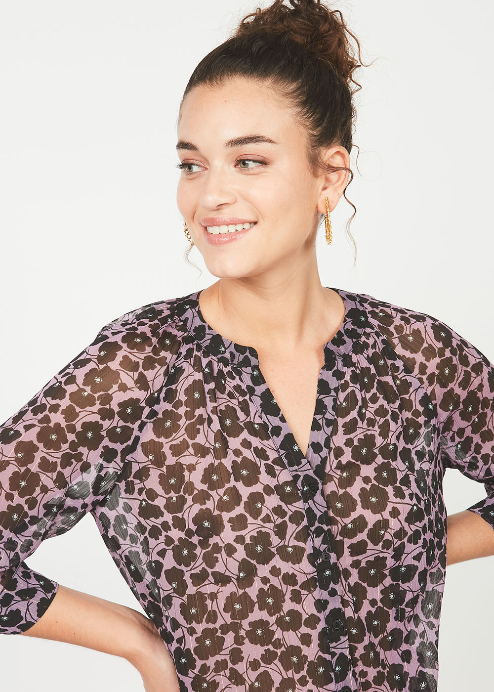 Optez pour la chemise COXYLIA à encolure en V et imprimé fleuri. Cette chemise à manches 3/4 sera votre meilleure alliée cette saison. Vous allez craquer pour son col V avec son effet de transparence et son imprimé estival. Vous adorerez porter cette chemise avec toutes vos jupes shorts et pantalons.