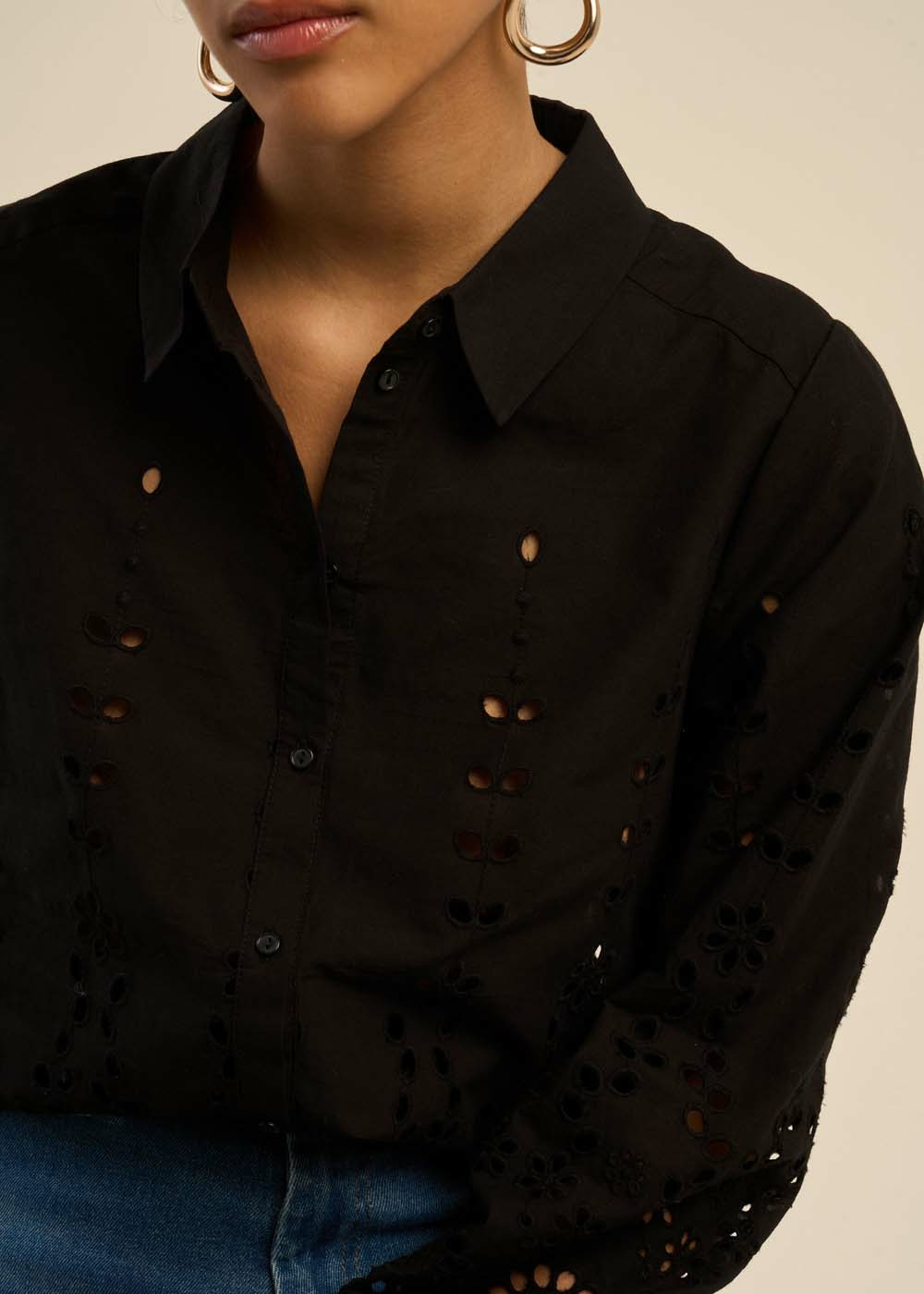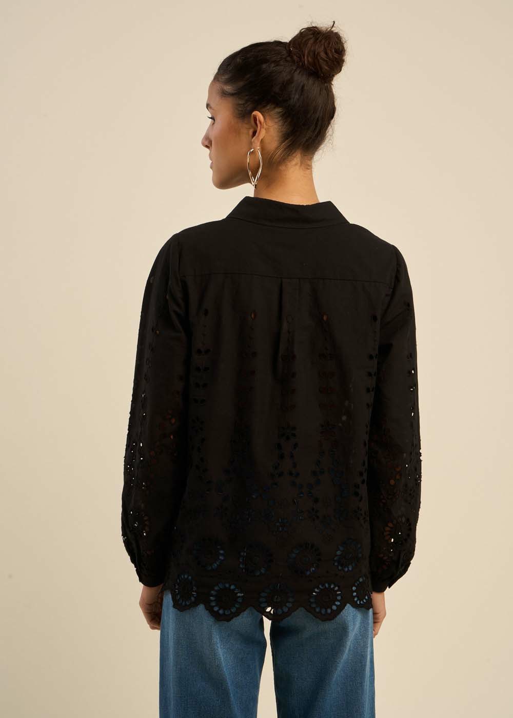 Apportez une touche de charme romantique à votre garde-robe avec la chemise COBALY. Confectionnée en broderie anglaise délicate, cette pièce intemporelle séduit par son allure oversize et sa longueur élégante. Son col chemise classique et ses manches légèrement bouffantes ajoutent une touche de féminité, tandis que le bas festonné apporte une finition raffinée. Idéale pour un look chic et léger, cette chemise est parfaite pour les journées où style et confort vont de pair.