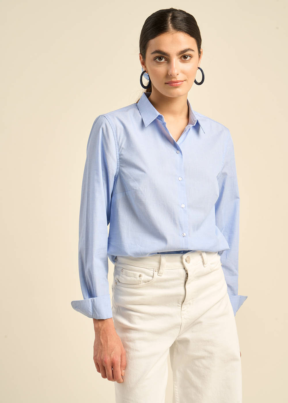 CORDOULA, le basique revisité. Confectionnée dans un coton fils à fils d'exception, cette chemise vous offre une sensation de douceur incomparable. Sa coupe cintrée, soulignée par une pince poitrine, met en valeur votre silhouette. Parfaite pour toutes les occasions, elle s'adaptera à toutes vos envies. Associez-la à un jean brut et des sneakers pour un look décontracté, ou à un costume pour une allure plus formelle.