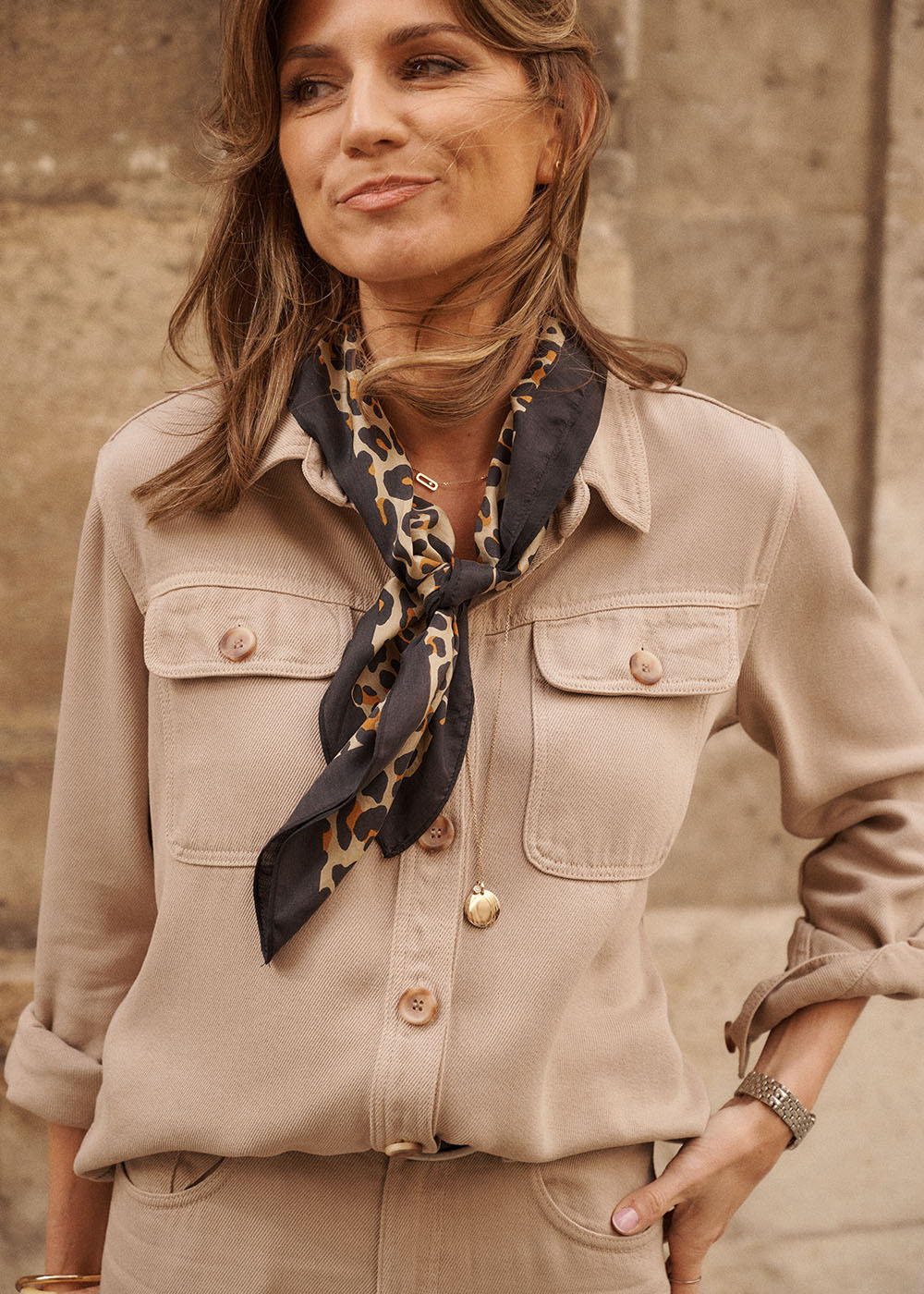 La chemise CHARLOTTE SOSO résulte d'une collaboration entre l'Armoire de Soso et Sud Express. La chemise présente des poches cousues à l'avant et une coupe droite. Elle est dotée de manches longues, d'un col chemise et de poignets boutonnés.