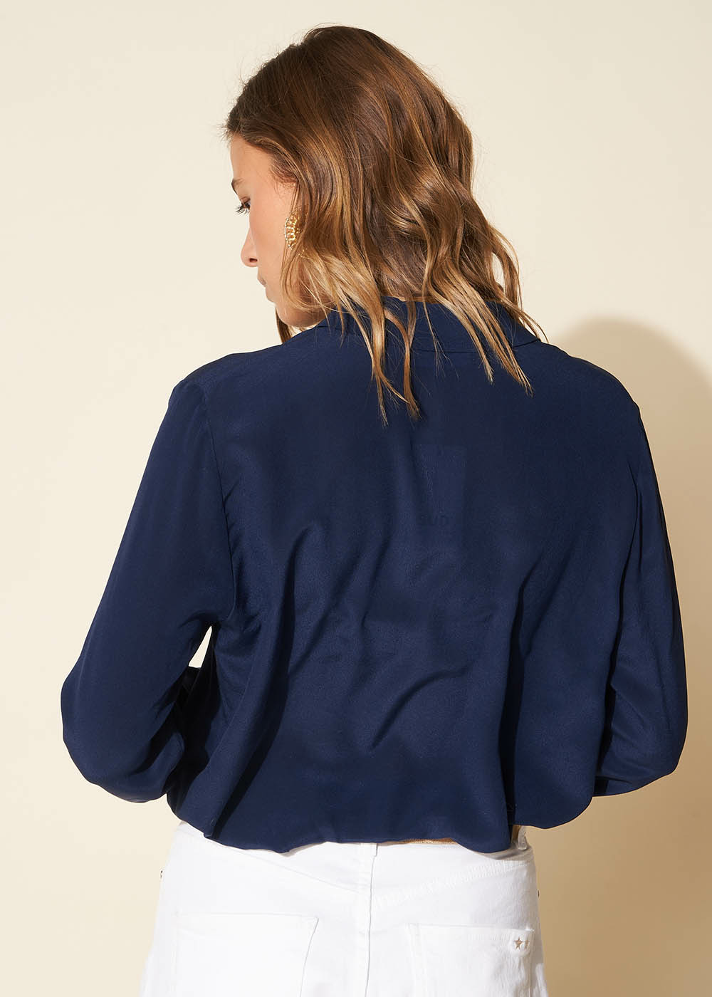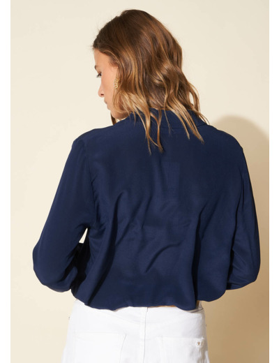 La blouse TIBLA promet élégance et légèreté avec sa composition 100% soie. Elle se compose d'un col chemise et de manches longues avec les poignets boutonnés. Portez-la avec votre jean favori.
