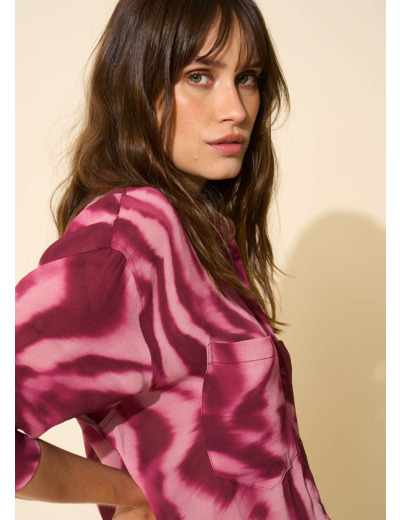 La chemise CAGUERA, fluide et ornée d'imprimés abstraits, offre un style contemporain et élégant. Avec son col classique et ses deux poches sur la poitrine, elle allie praticité et raffinement. Les emmanchures basses ajoutent une touche décontractée, tandis que la fermeture à boutons et les poignets resserrés apportent une finition soignée à cette pièce polyvalente.