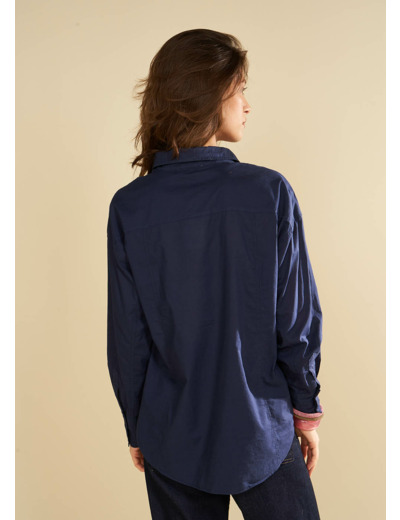 La chemise CHARLISE se présente en coupe oversize agrémentée de poches plaquées à l'avant. Ses manches longues sont pourvues d'un large poignet à trois boutons et d'une fente élégante. Elle comporte également des empiècements aux épaules et au dos ajoutant une touche distinctive à son design.