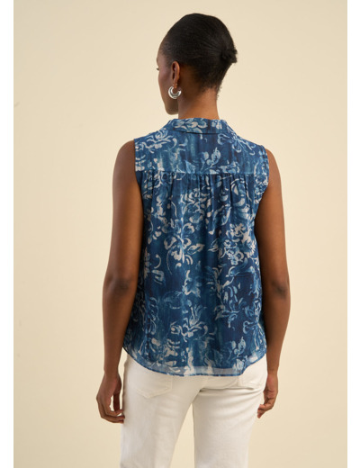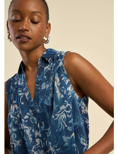 Le chemisier CIOLIA séduit par sa légèreté et sa fluidité. Sans manches et à la coupe évasée, il apporte une grande liberté de mouvement et une silhouette naturelle. Son imprimé floral dans les tons marine lui donne une touche estivale élégante, idéale pour les journées ensoleillées. Confectionné en viscose douce, fluide et respirante, il est parfait à porter aussi bien en ville qu’en vacances au bord de la mer. Facile à assortir avec un jean ou un pantalon blanc, c’est une pièce simple et fraîche pour l’été.