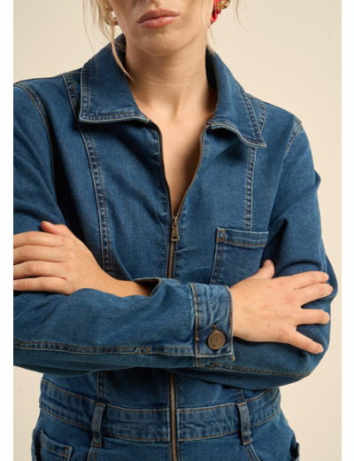 La combinaison CLARY allie à la perfection confort et style avec ses manches longues en denim de qualité. Conçue pour offrir une silhouette moderne et épurée, elle se distingue par sa fermeture à zip, qui assure à la fois praticité et élégance.