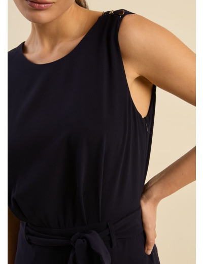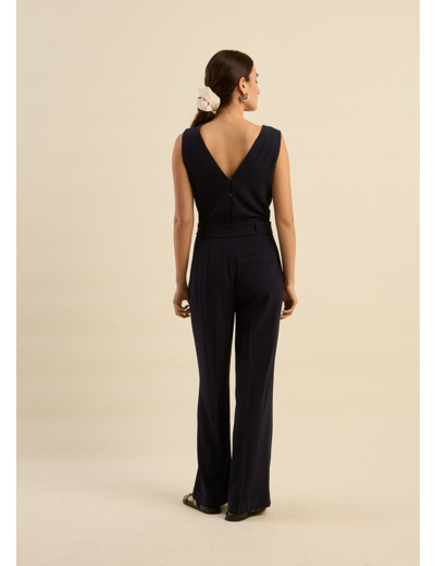 La combinaison CAMIKA combine élégance et confort avec sa taille ceinturée et son haut ajusté. Les jambes larges avec plis formés apportent une touche fluide et sophistiquée. Elle se ferme dans le dos avec boutons et fermeture éclair pour un ajustement parfait. Les fausses poches passepoilées ajoutent un détail chic. Elle se repasse facilement pour maintenir sa fluidité. Un look à la fois moderne et raffiné.
