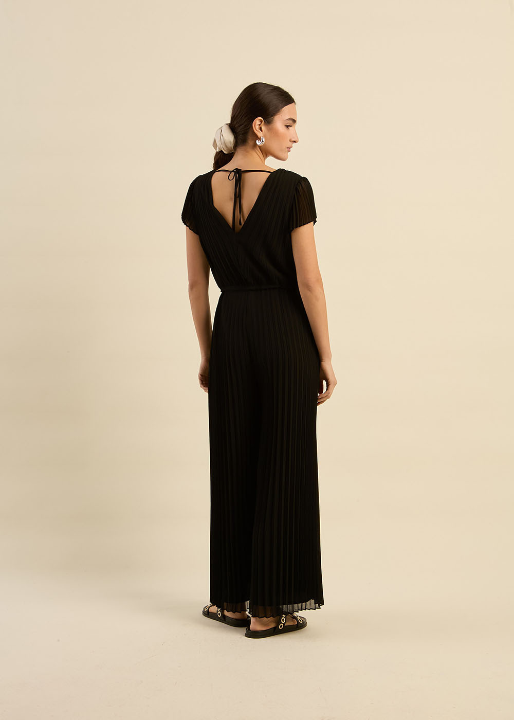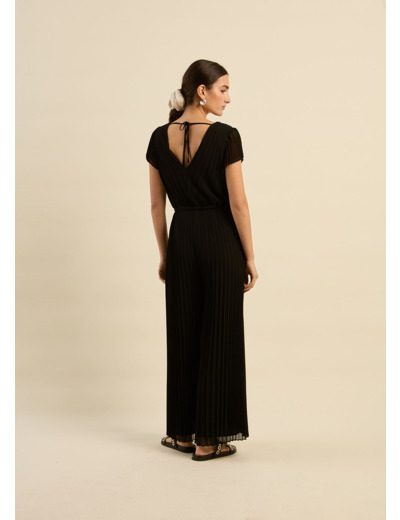 La combinaison CANALINA allie modernité et féminité grâce à sa coupe fluide et ses délicats détails plissés. Son encolure en V, aussi bien à l’avant qu’au dos, sublime le port de tête et apporte une touche sophistiquée.