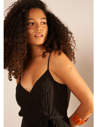 La combinaison CUBALIA saura vous mettre en valeur pour toutes les occasions. Elle détient une encolure cache-coeur une taille élastiquée et de fines bretelles. Accesoirisez-la avec des bijoux dorés.