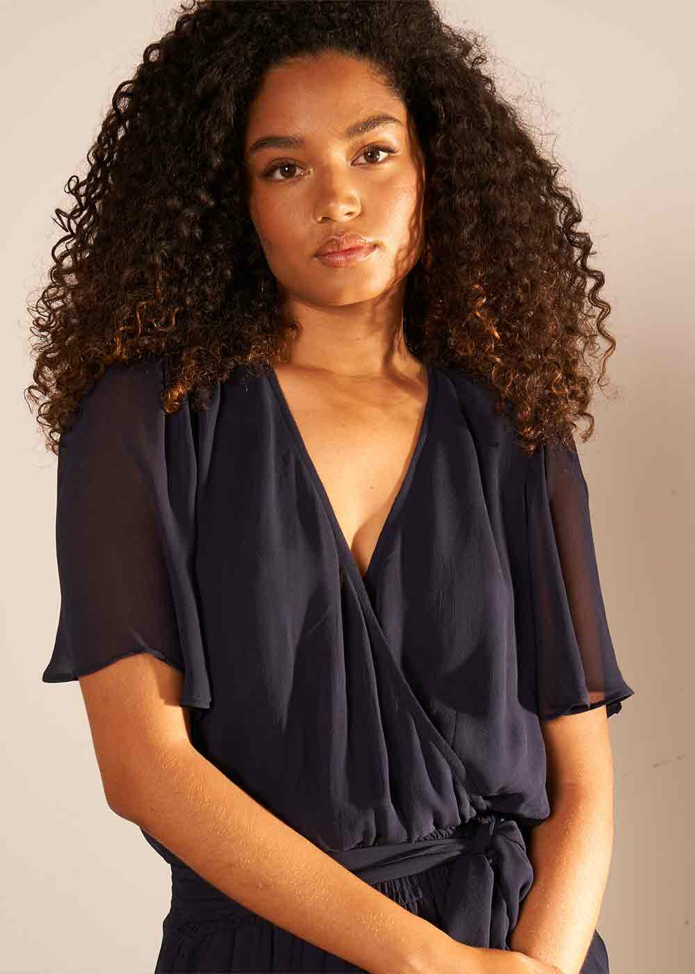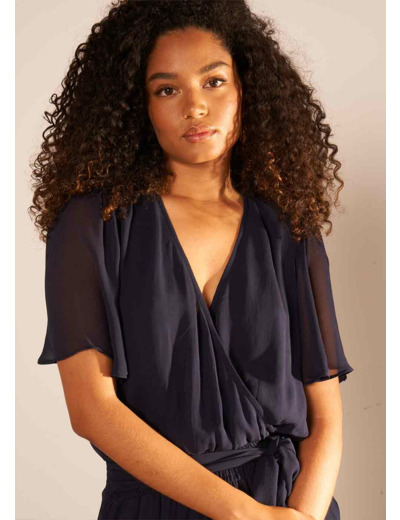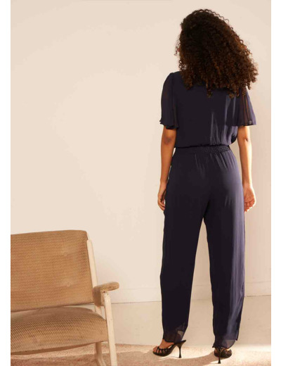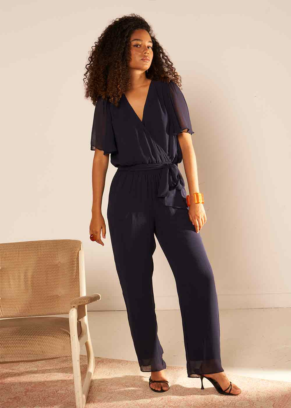 La combinaison CALEX est une tenue polyvalente qui vous mettra en valeur pour toutes les occasions. Cette combinaison pantalon dispose d'une encolure cache-coeur élégante de manches courtes à volants pour une touche féminine d'une taille élastiquée pour un ajustement confortable et d'une longueur de 150 cm pour une taille M. Pour parfaire votre look n'hésitez pas à l'accessoiriser avec des bijoux dorés qui ajouteront une touche d'éclat à cette tenue déjà élégante.
