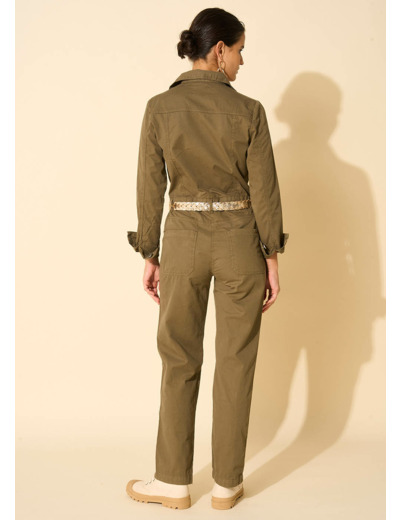 La combinaison CAMILLA incarne une allure à la fois pratique et sophistiquée avec ses manches longues et son col chemise, soulignés par une poche pratique sur la poitrine à gauche. Agrémentée d'une fermeture à zip sur le devant, elle offre une silhouette élégante avec ses jambes droites, idéale pour une journée décontractée en ville ou une sortie entre amis.