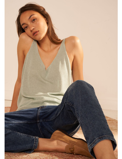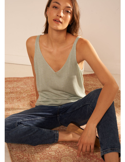 Ce débardeur à la coupe loose et à l'encolure en V allie aisance absolue allure et féminité. Composé d'une viscose fluide le top DEMOISELLES est orné d'un fil métallisé très doux qui glisse sur la peau. Ce débardeur col V à l'allure désinvolte habille tous vos basiques en un clin d'oeil et peut se porter en journée comme en soirée. Àvec ses fines bretelles et son dos échancré le débardeur DEMOISELLES joue la carte de la séduction tout en subtilité.
