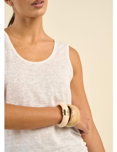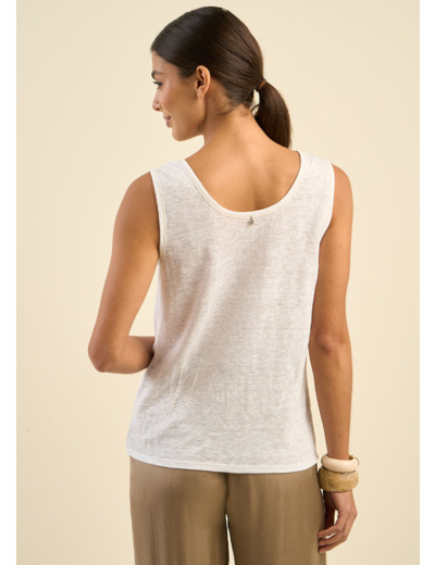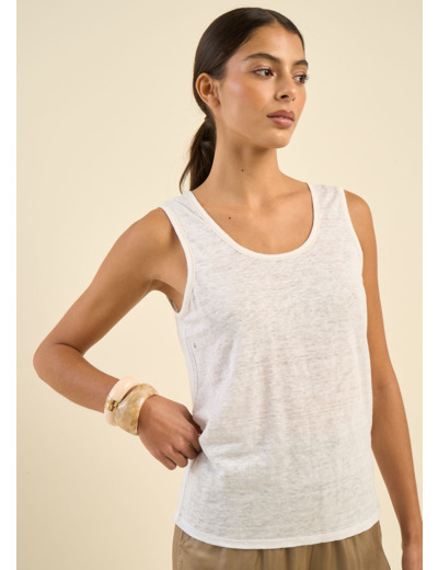 Le débardeur DELYA allie légèreté et élégance avec son col rond et profond, créant un décolleté flatteur. Confectionné en lin, il offre une sensation de fraîcheur et de confort tout au long de la journée. Ses épaules larges et sa coupe fluide en font une pièce agréable à porter en toute saison. Le détail de la surpiqûre en lurex au niveau du col et des emmanchures ajoute une touche subtilement brillante et originale. Ce débardeur se porte facilement avec un pantalon ou une jupe pour un look à la fois décontracté et chic.