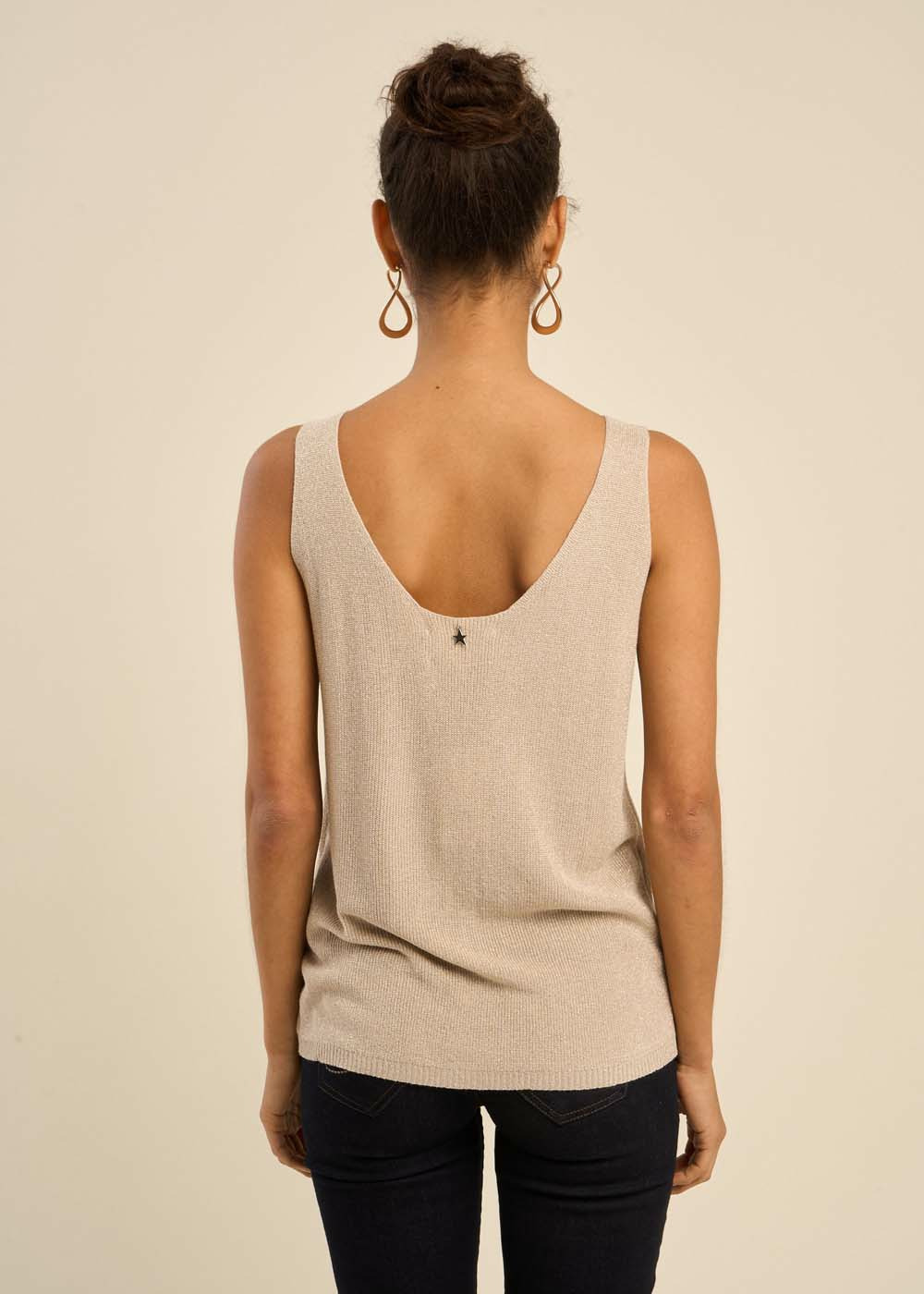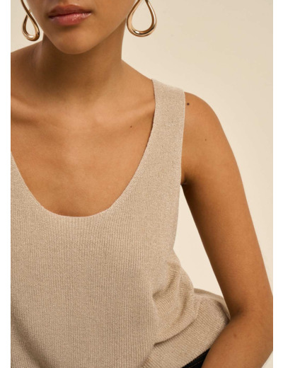 Laissez-vous charmer par le débardeur DIBBA, un modèle moderne et versatile qui se distingue par son encolure ronde et ses bretelles délicates. Confectionné dans une maille scintillante grâce à l'ajout de fibres métalliques, il illumine vos tenues d'une touche de brillance subtile. Sa coupe ample et actuelle en fait un allié parfait pour créer des looks aussi bien décontractés que plus sophistiqués, selon vos envies.